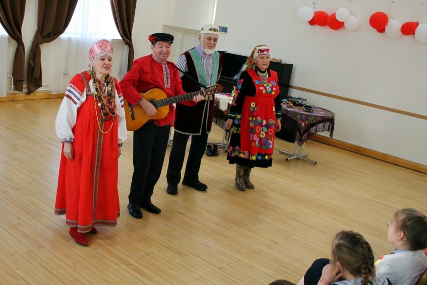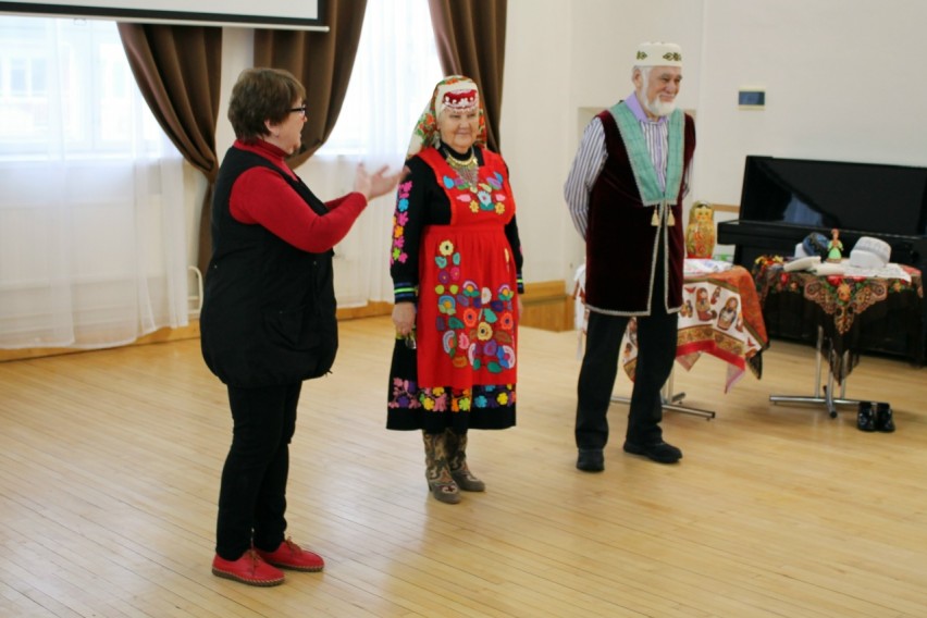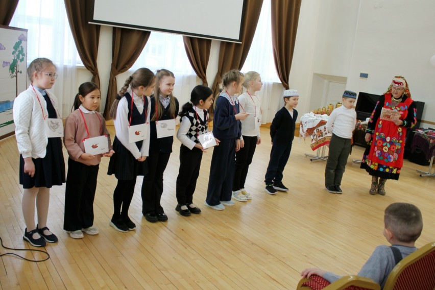 Мальчишки примеряли на себя тюбетейки, а девочки учились повязывать платки на татарский и русский манер. Изюминкой встречи стали веселые танцы под национальную музыку и экспресс-инсценировка известной сказки «Как бедняк гуся делил», роли в которой исполняли сами ребята.