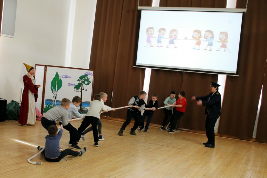 Путешествуя по книжным просторам, юные читатели встретились с капитаном Врунгелем, Оле-Лукойе, Чиполлино, котом Базилио и лисой Алисой, царем Грамматики из Страны невыученных уроков.