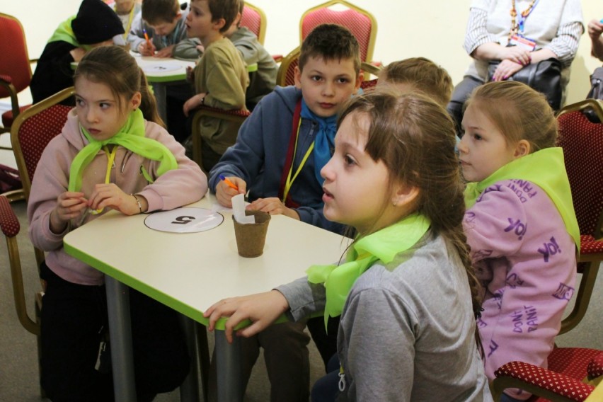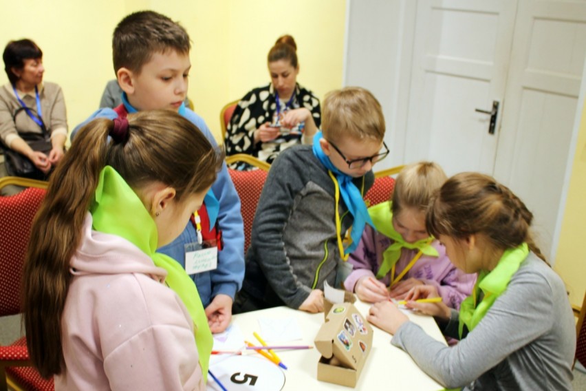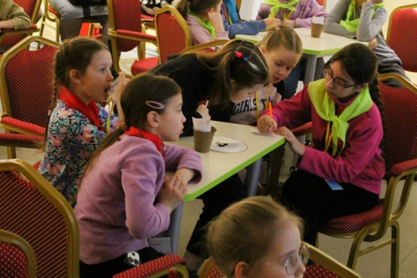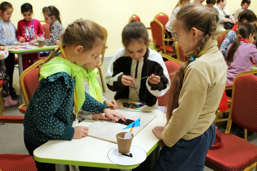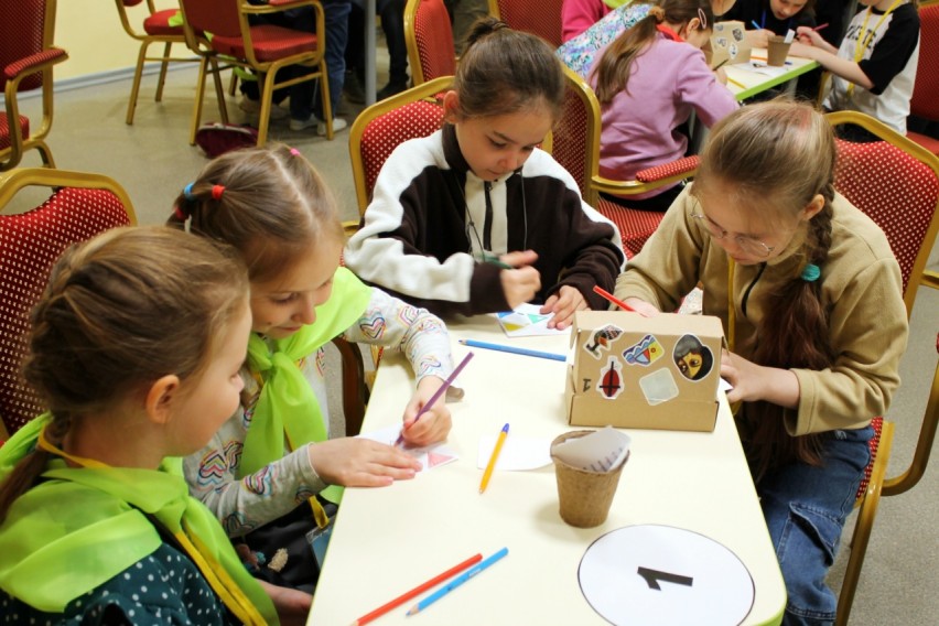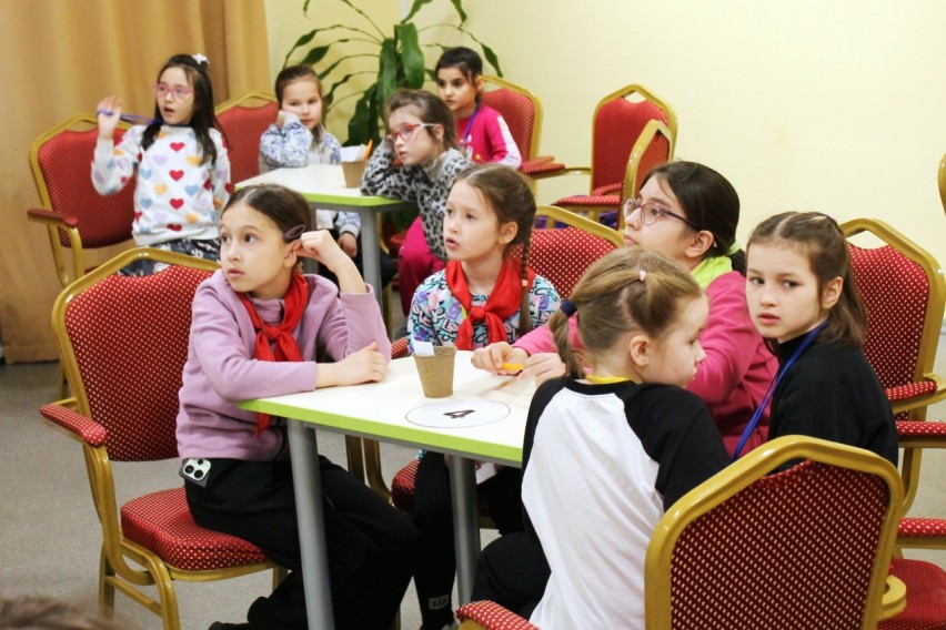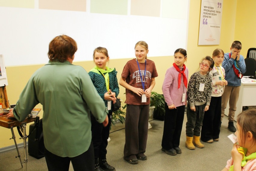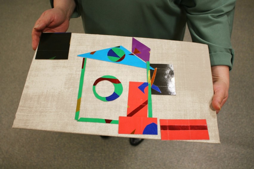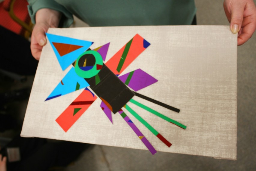 Юные посетители библиотеки узнали ключевые факты биографии В.Кандинского и попытались понять его удивительный мир. Для этого они выполнили несколько необычных заданий: сложить из букв одного большого слова десяток маленьких, «озвучить» живописные полотна художника, ощутить запах цвета, собрать из геометрических фигур свой шедевр абстрактной живописи.