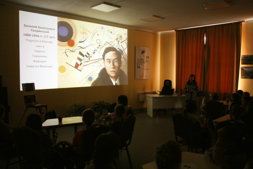 В Сортавальской центральной библиотеке в рамках Недели детской и юношеской книги прошли интерактивные игры по творчеству Василия Кандинского «Услышать цвет в живописи». В основе сценария лежит книга Барб Розенсток о судьбе великого живописца.