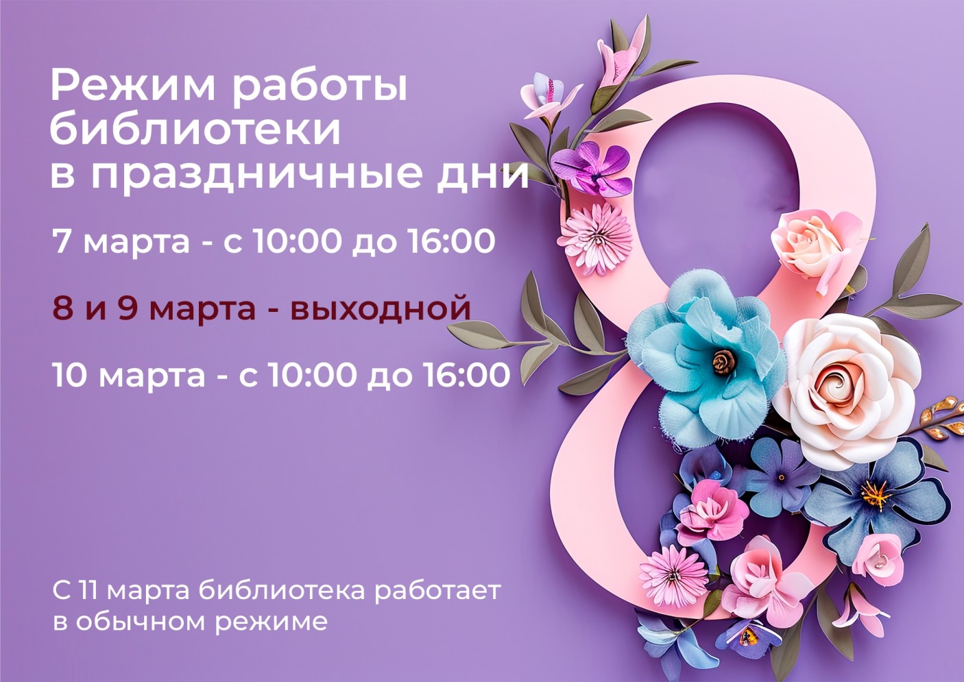 С праздником 8 марта! Милые дамы! Коллектив Сортавальской центральной библиотеки поздравляет вас с 8 марта! назад