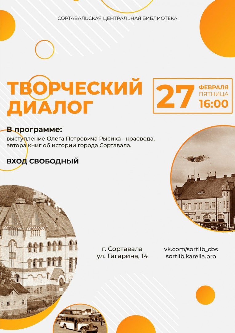 Приглашаем на творческий диалог с краеведом и автором книг об истории Сортавала Олегом Петровичем Рысиком