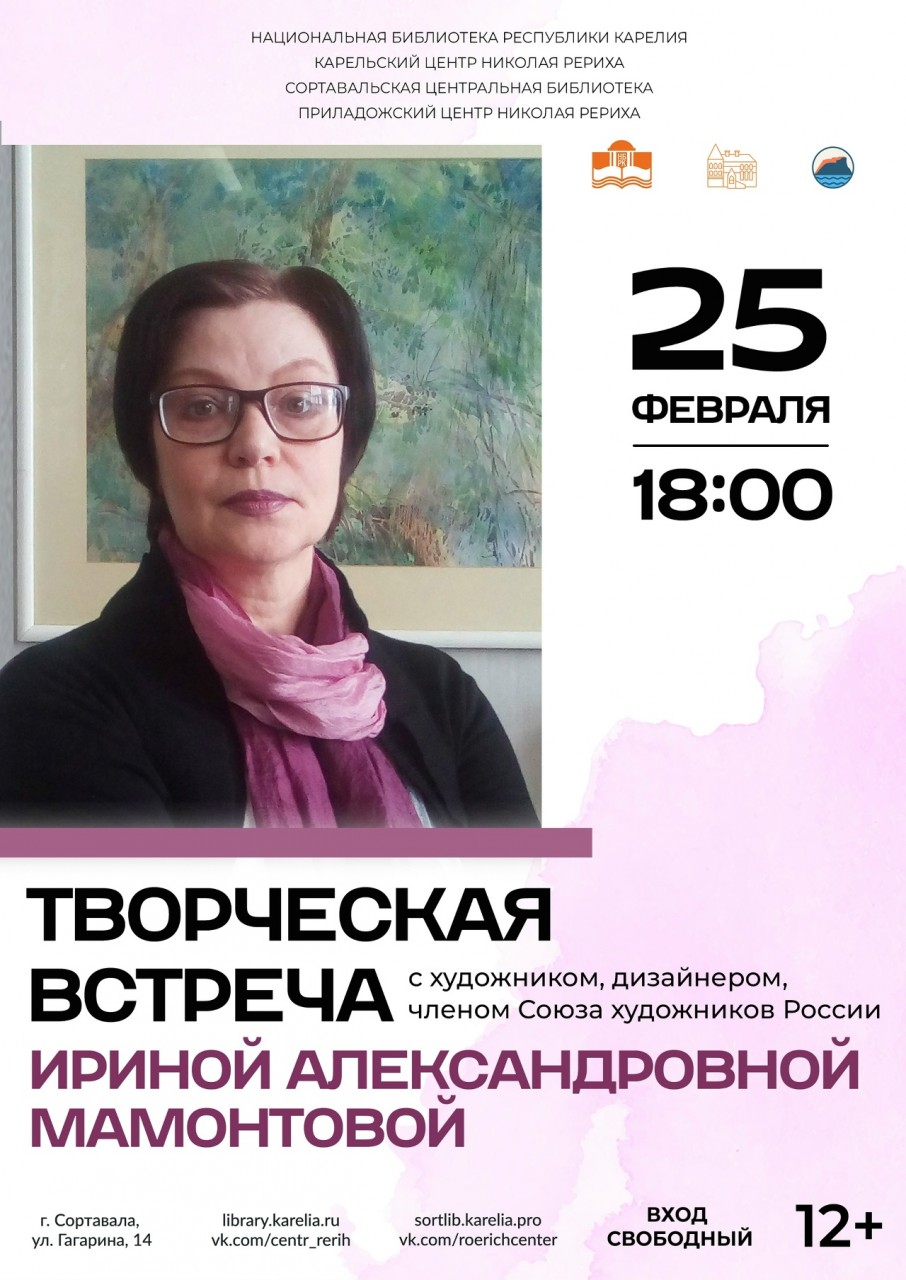 25 февраля в 18.00 состоится творческая встреча с Ириной Александровной Мамонтовой - художником, дизайнером, членом Союза художников России.
