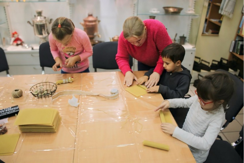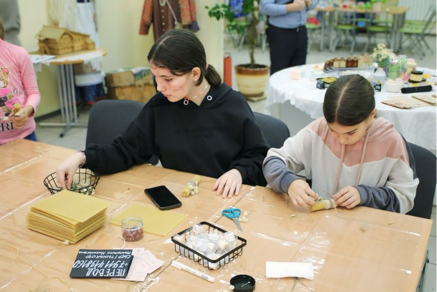 Волшебные свечи из натуральной вощины создавались на мастер-классе Кильметовой Маргариты. Кроме навыка кручения свечей у ведущей мастер-класса можно было получить консультацию по выбору парфюмерии.