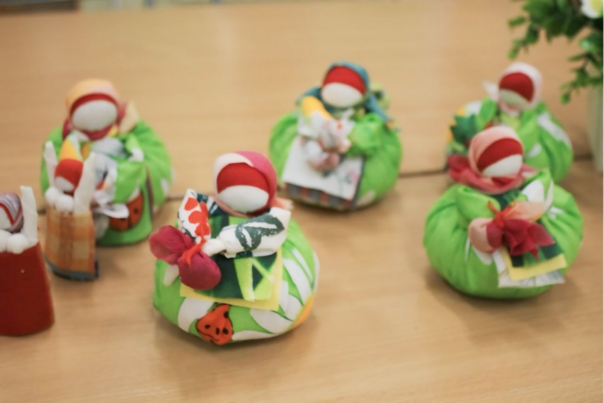 Каждый участник авторского мастер-класса «Игрушка с сюрпризом» от хозяйки этнокультурного зала «Karjalan palaine» («Кусочек Карелии») Аллы Михайловны Силкиной стал обладателем памятного сувенира в народном стиле, сделанным собственными руками.