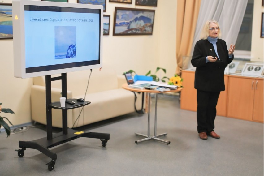 Ярким событием «Библионочи-2024» стала творческая встреча заслуженным работником культуры Карелии, доктором филологических наук, поэтом Еленой Григорьевной Сойни. На ней прошла презентация её книги «Н.К. Рерих: иероглифы северной жизни», за которую автор получила премию Республики Карелия в области культуры, искусства и литературы 2024 года. Также книга была удостоена специального приза «Общества любителей книги» при подведении итогов республиканского Конкурса «Книга года Республики Карелия - 2022». Почитатели творчества Н.К.Рериха услышали увлекательный рассказ об основных этапах жизни художника и о том, как создавалось это фундаментальное издание.