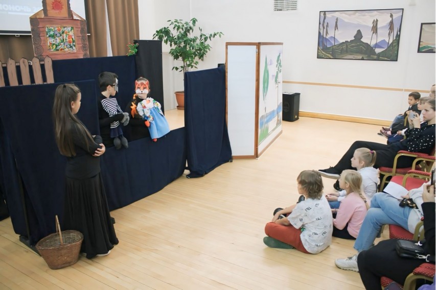 Наш надежный друг и партнер, Кукольно-театральная студия «Добрый дом» (руководитель Ксения Эммануиловна Румянцева) представила на суд посетителей «Библионочи-2024» обновленную версию спектакля «Теремок». Необычный дизайн кукол и декораций, искренняя игра юных актеров не оставили равнодушными тех, кому посчастливилось стать зрителями этой постановки.