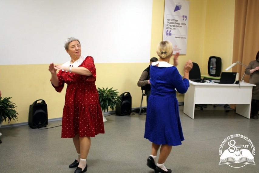 Посетители танцплощадки «Рио-Рита, Рио-Рита вертится фокстрот…» погрузились в музыкальную атмосферу эпохи под аккомпанемент баяниста Александра Леоновича Тужикова. Участницы группы линейных танцев «Ритм» (руководитель Галина Смирнова) провели мастер-класс по танцам военных лет.