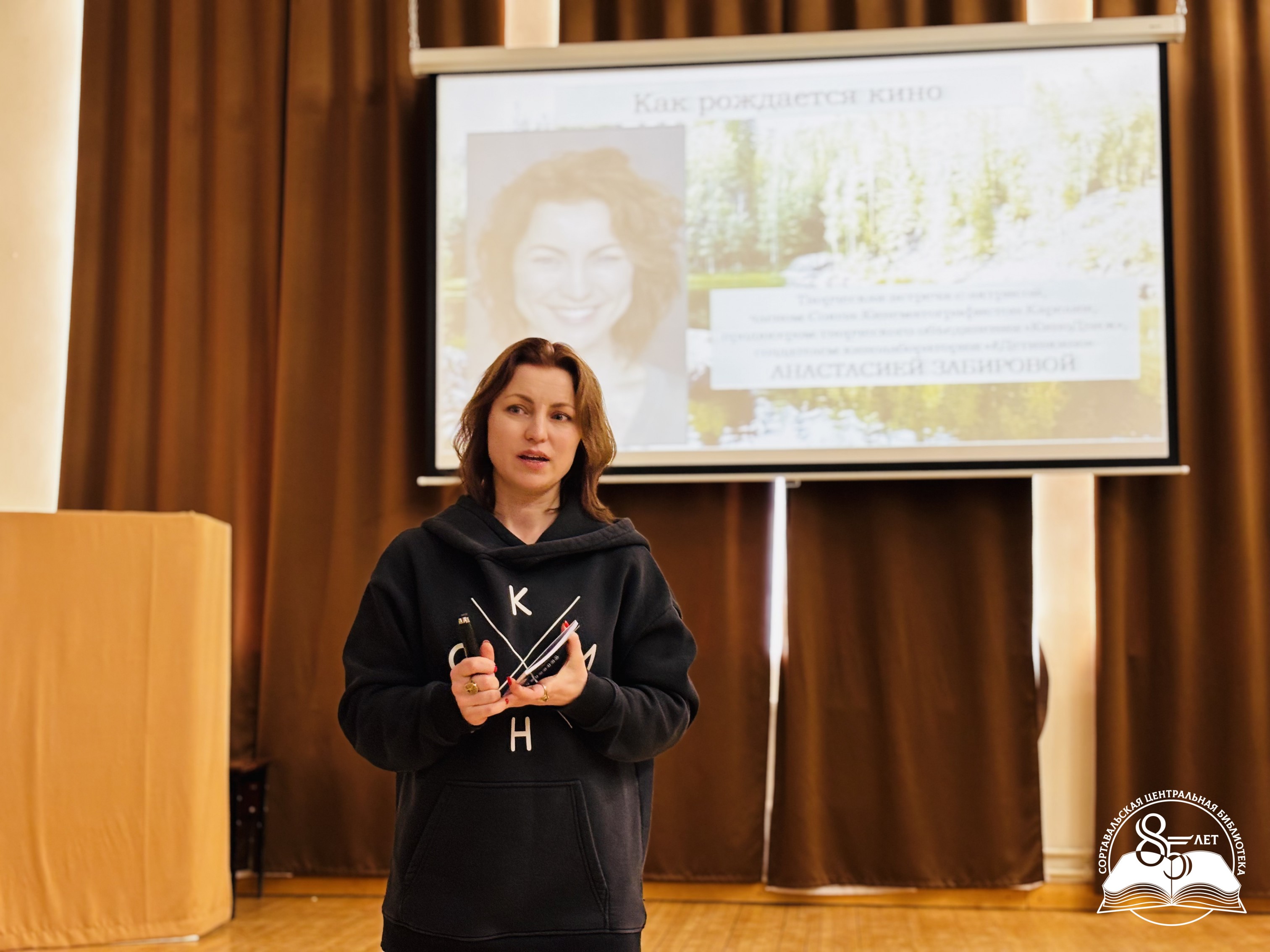 Специальным гостем Акции «Библионочь-2025» в Сортавальской центральной библиотеке стала актриса (телесериалы «Невский», «Золотая кровь», «Ментовские войны» и другие), член Союза Кинематографистов Карелии, продюсер творческого объединения «КиноДвиж», создатель кинолаборатории «Дети в кино» Анастасия Забирова. В ходе интересной беседы она поделилась своими воспоминаниями из театральной и кино-жизни, рассказала о ключевых моментах создания видео-ролика для начального этапа кастинга и провела мастер-класс по актерскому мастерству для юных участников встречи.
