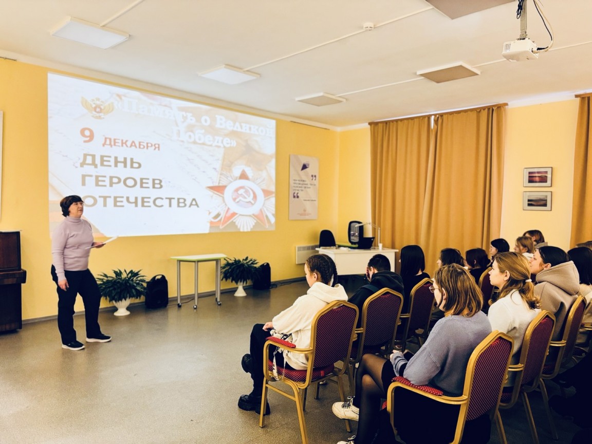 9 декабря в Сортавальской районной библиотеке, для учащихся Сортавальского колледжа был проведен урок мужества «Память о Великой Победе», посвященный Дню Героев Отечества.