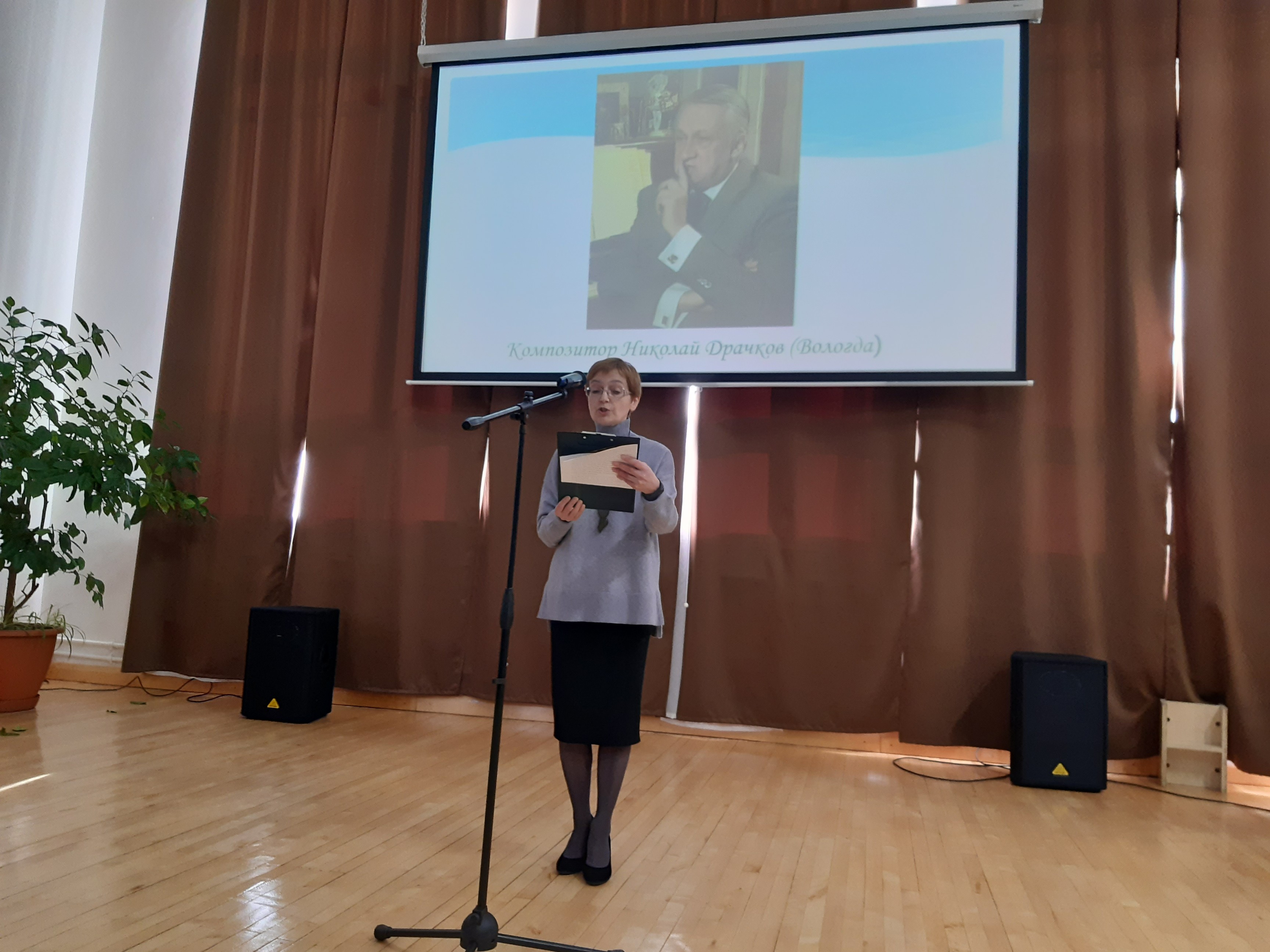 Ведущей вечера была Ольга Луговская. Главный библиотекарь Краеведческого центра библиотеки, Зайцева Н.И., подготовила электронную презентацию с фотографиями, иллюстрирующими этапы жизни поэта, а преподаватели музыкальной школы прочли стихи и исполнили песни, в основу которых легли поэтические строки Рубцова.