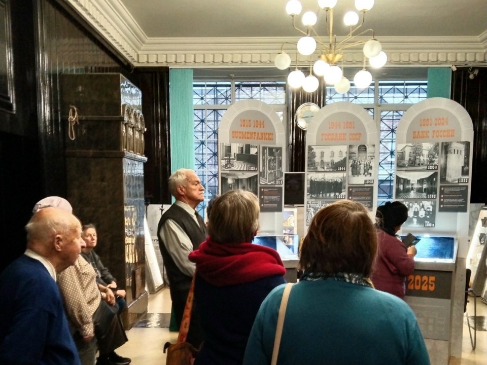 27 ноября банк посетили члены Краеведческого клуба при Сортавальской центральной библиотеке. Мы впервые оказались в уникальных интерьерах этого исторического здания и , благодаря увлекательному рассказу экскурсовода Екатерины Фроловой, узнали много нового про его историю.
