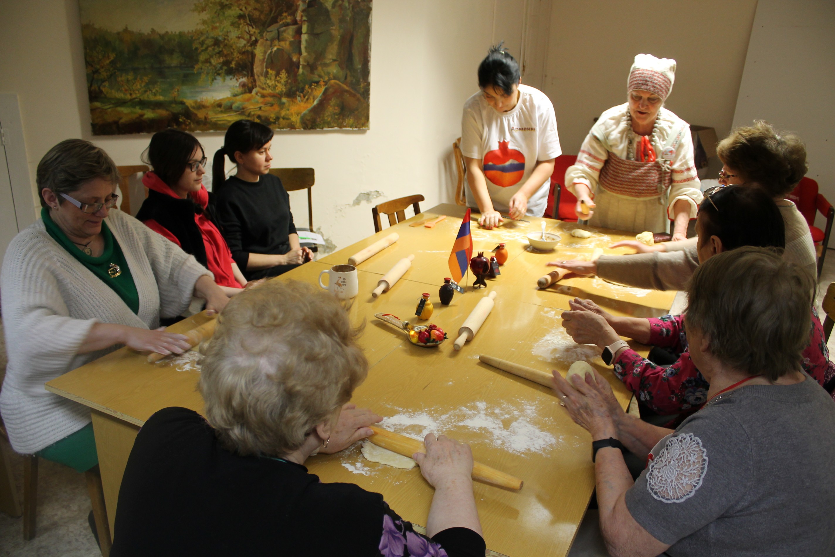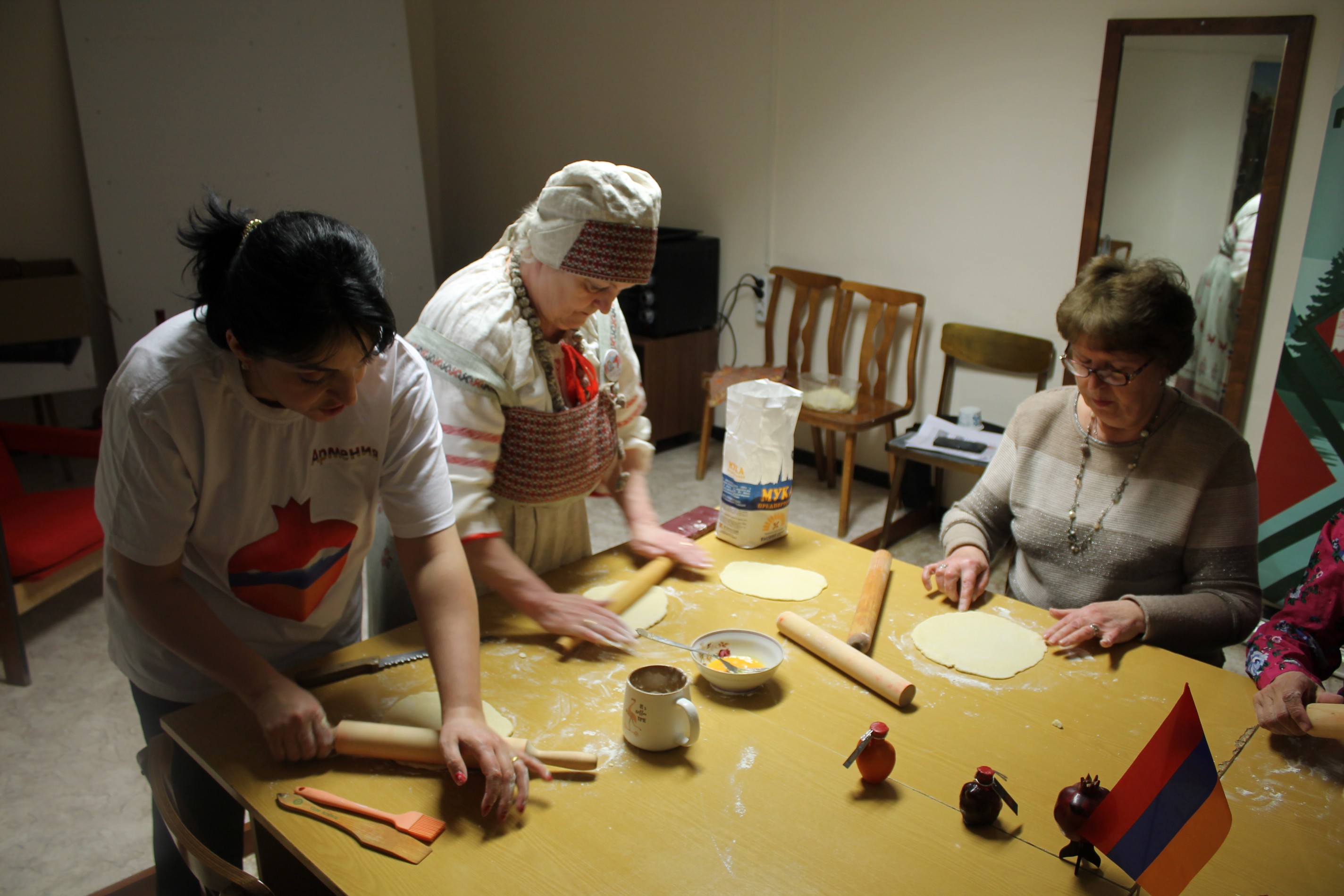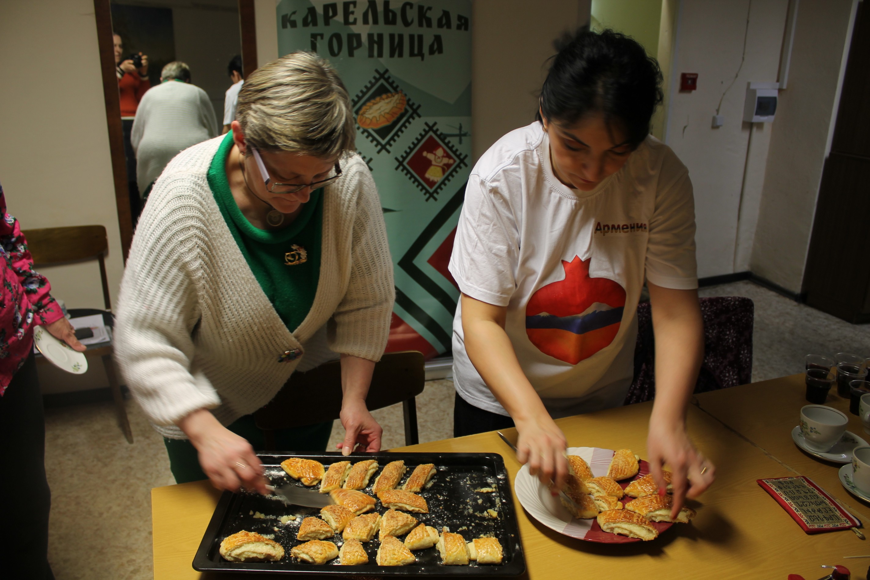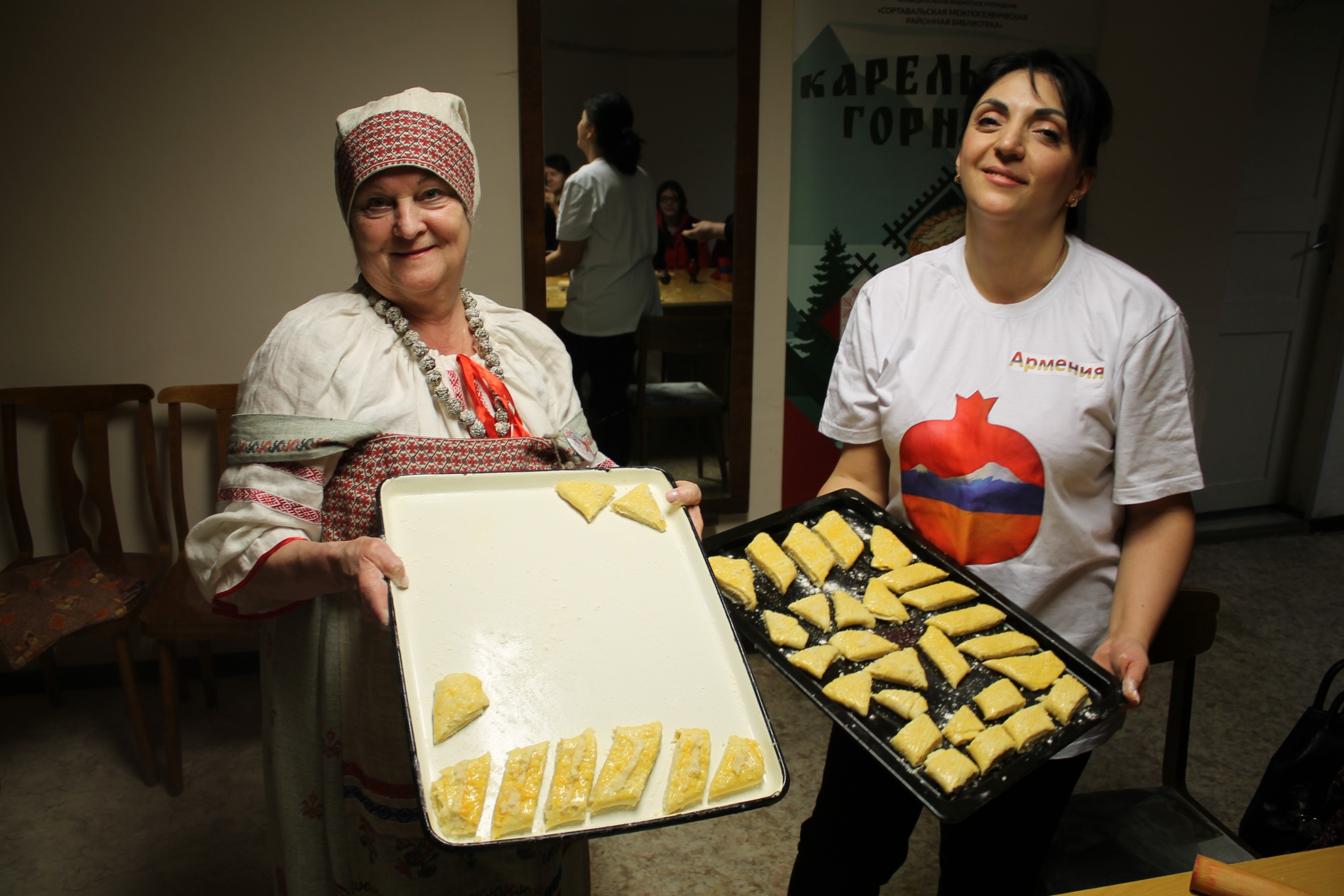 19 марта в Сортавальской районной библиотеке прошел необычный мастер-класс. На этот раз хозяйку этнокультурного зала «Karjalan palaine» («Кусочек Карелии») Аллу Михайловну Силкину навестила гостья из Армении, Сюзанна Агабекян. Она рассказала о том, как готовят традиционное армянское печенье «гата» в её семье, поделилась секретами изготовления различных вариантов начинки и теста. Особую атмосферу встрече придавали армянские мелодии и песни, звучавшие во время мастер-класса. #ГенийМеста