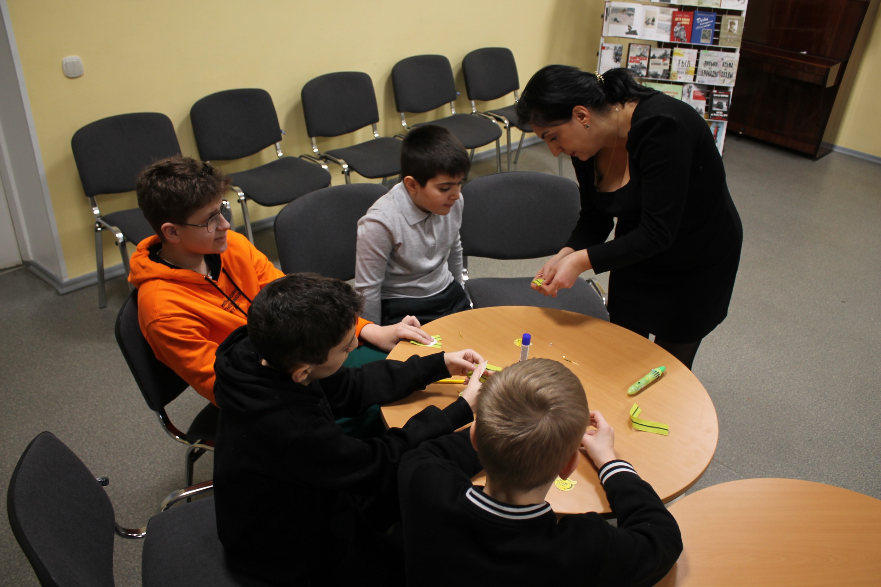 Во второй части мероприятия руководитель Виртуального филиала Русского музея Сюзанна Гайковна Агабекян провела мастер-класс, на котором ребята создали модель медали «За оборону Ленинграда».