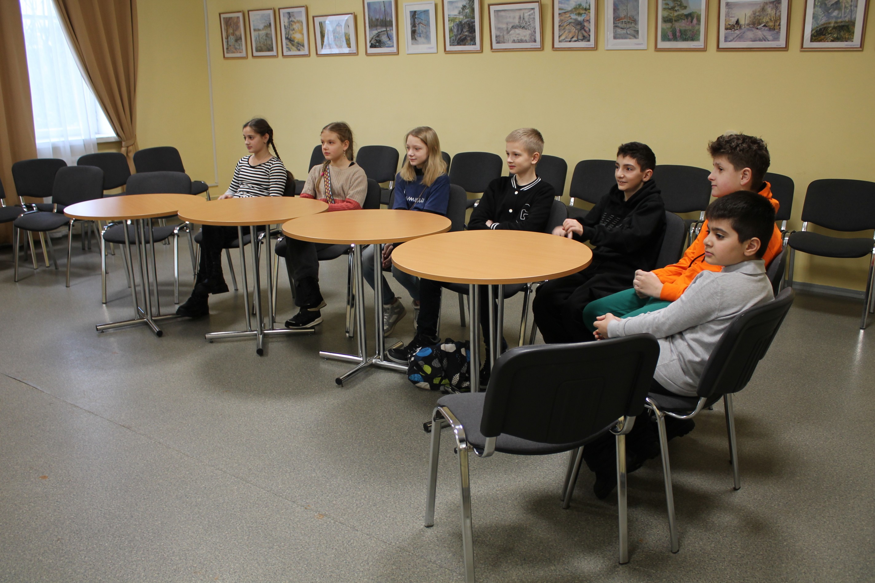В первой части мастерской ребята заслушали рассказ, подготовленный заведующим отделом обслуживания Алевтиной Юрьевной Леонтьевой о детях блокады, увидели произведения из коллекции Русского музея, созданные совсем ещё юными художниками и профессиональными мастерами во время блокады, документальные фотографии, посмотрели отрывки из художественного фильма «Жила – была девочка».