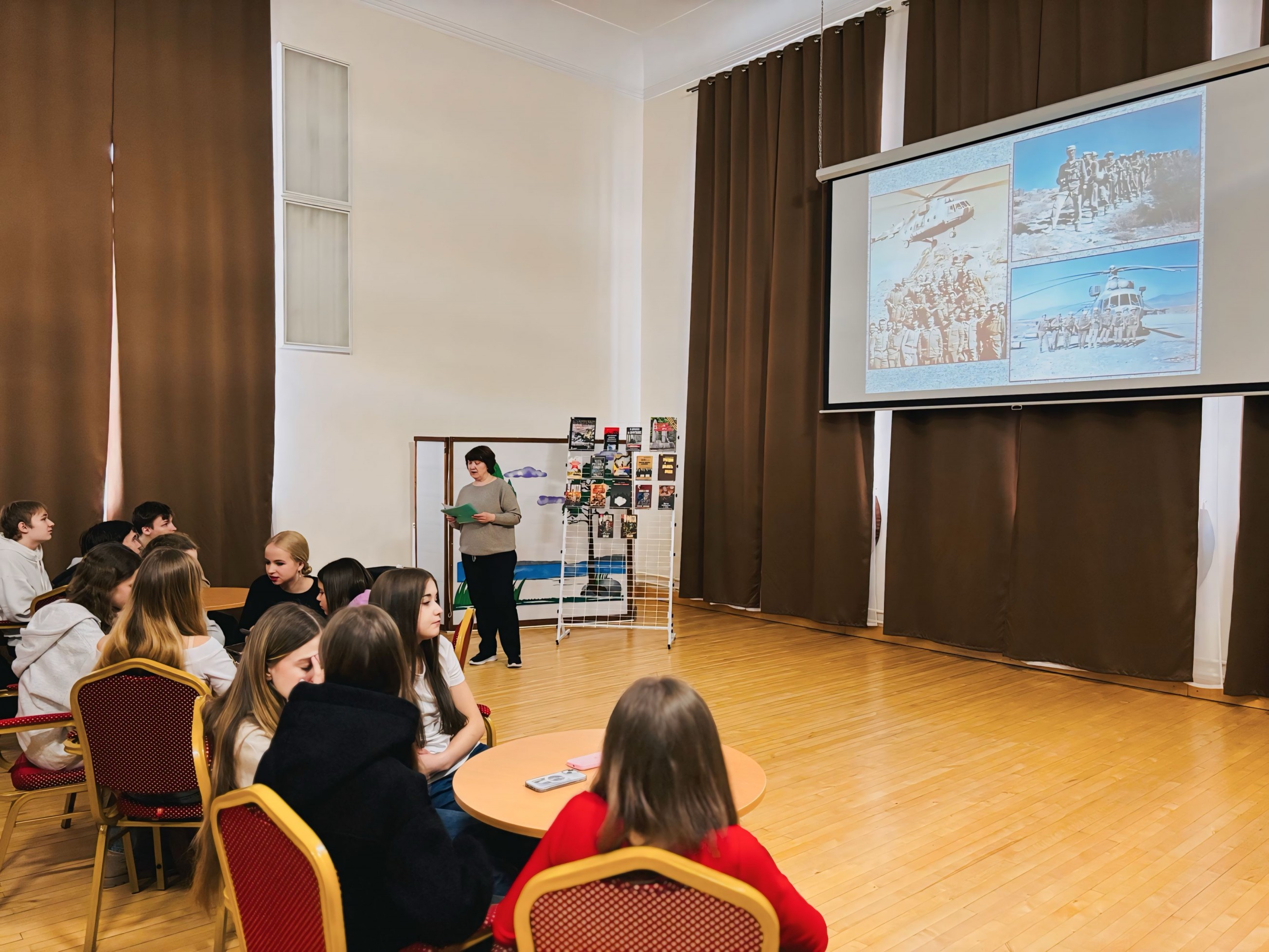 Накануне памятной даты, 14 февраля, в Сортавальской центральной библиотеке для учащихся Сортавальского колледжа и учащихся Средней школы №1 г.Сортавала прошел исторический час «Память Афганистана». Участники мероприятия познакомились с событиями войны в Афганистане, узнали, как мужественно выполняли свой долг наши солдаты, как в сложнейших условиях проявляли стойкость, благородство и сохраняли верность военной присяге и долгу.