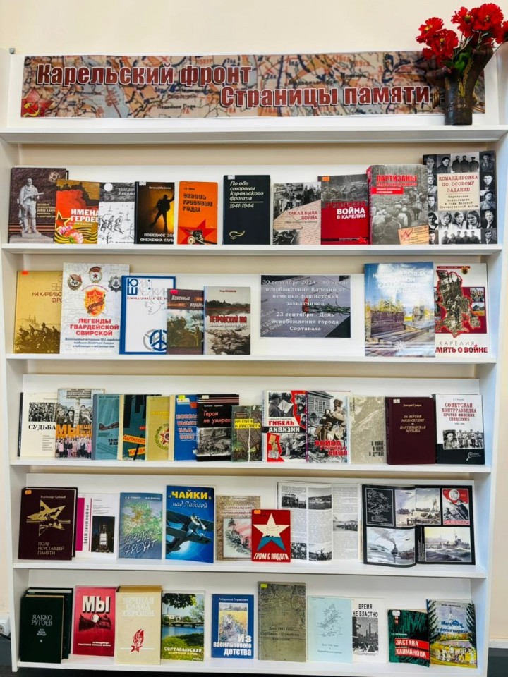 Приглашаем всех желающих познакомиться с книжной выставкой «Карельский фронт. Страницы памяти», посвященной 80-летию со дня освобождения республики и города Сортавала.