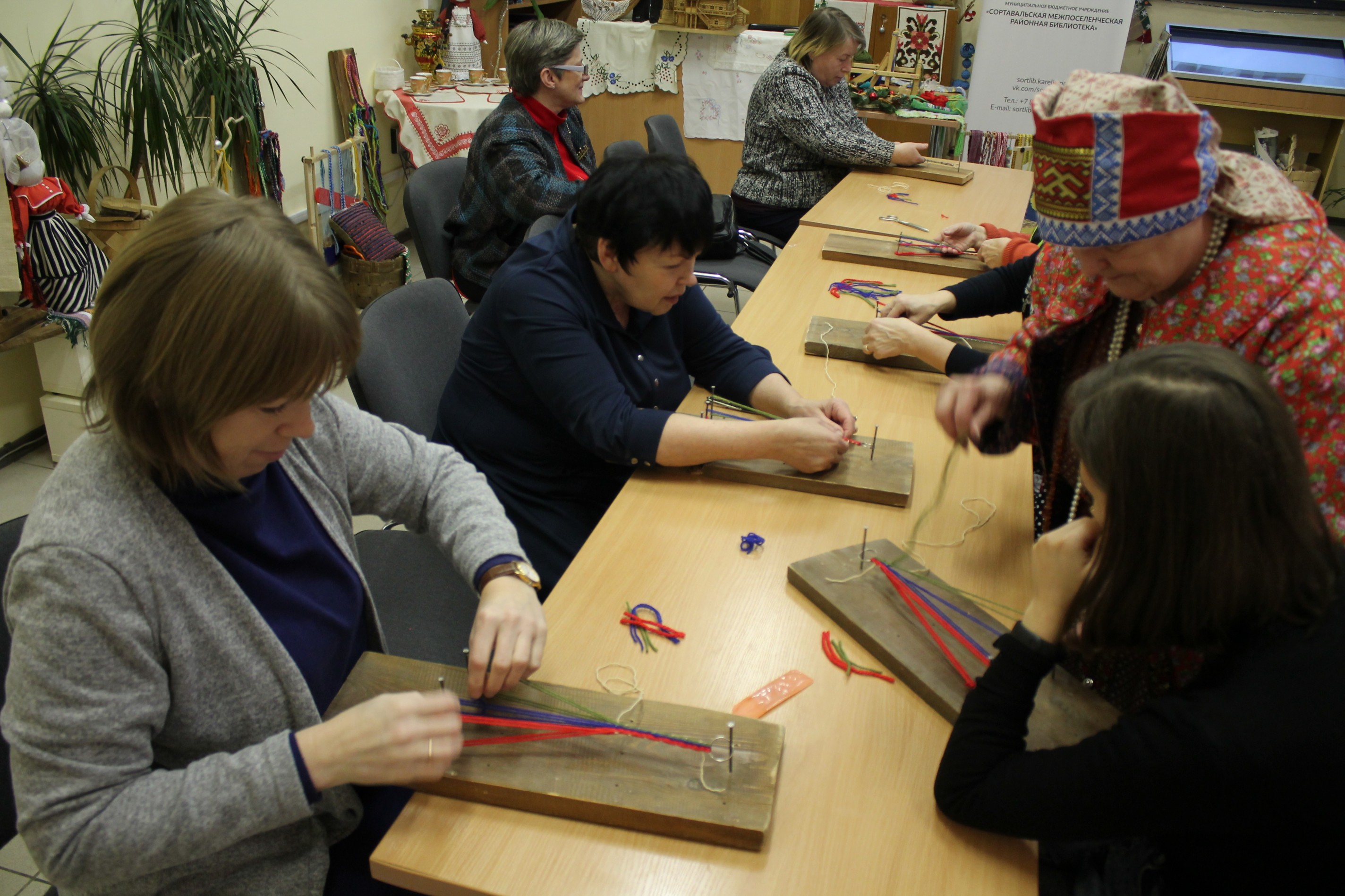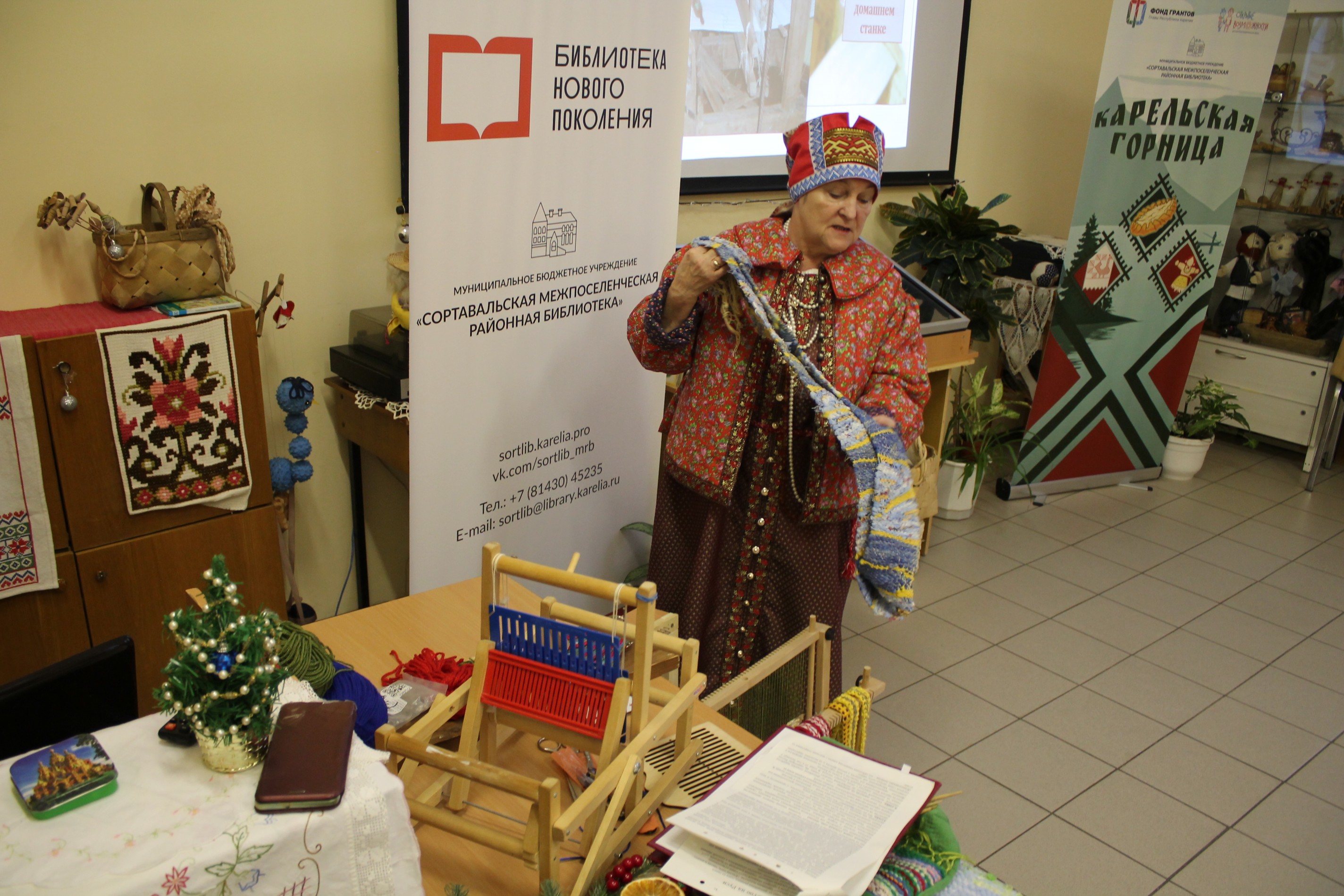 13 декабря в Сортавальской районной библиотеке на одной из площадок проекта «Гений места» прошел мастер - класс по ткачеству. Его провела хозяйка этнокультурного зала «Karjalan palaine» («Кусочек Карелии»), известная рукодельница, Алла Михайловна Силкина. В качестве вступительного слова, она рассказала об истории ткачества с древнейших времен до наших дней, приоткрыв тайну сакральных значений рисунков и цветов, которые использовали в своих работах мастерицы. Следуя ее рекомендациям, участники мастер-класса сплели брелки-обереги с карельской символикой.