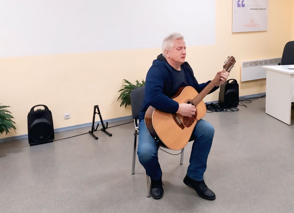 Житель города Сортавала Александр Владимирович Кокунин исполнил песни из репертуара великого барда, а также поделился своими воспоминаниями, связанными с туристическими походами и альпинизмом.