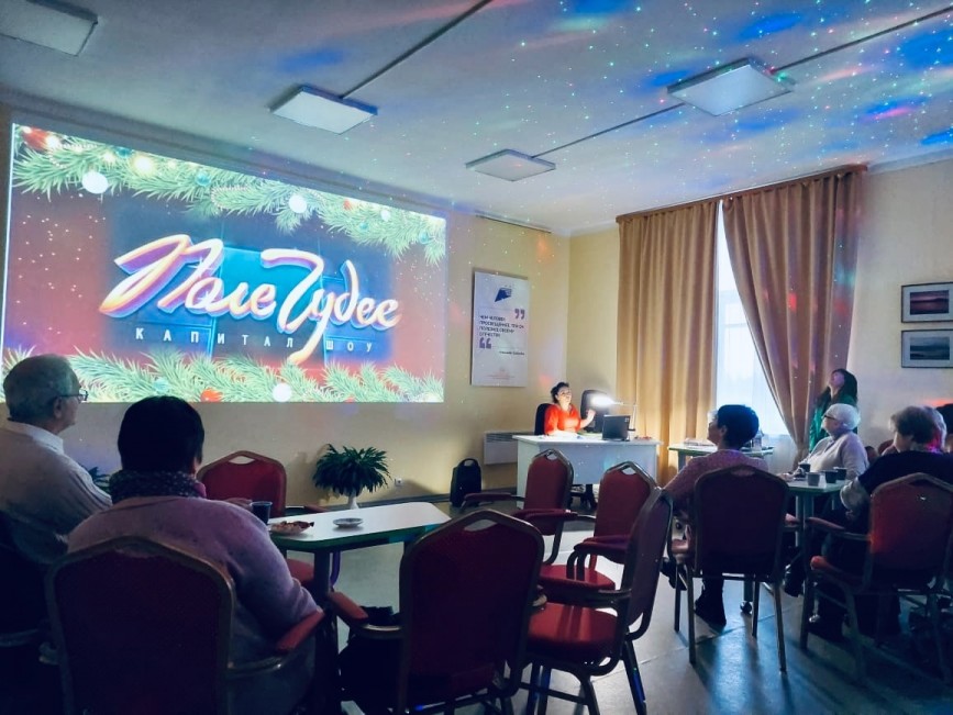 Каждый смог не только блеснуть эрудицией, но и получить заслуженные призы и сладкие угощения. Особое настроение первой части встречи создал талантливый музыкант Александр Ильич Лищинский, который, исполнив несколько новогодних музыкальных композиций на пианино, окунул нас в атмосферу праздника.