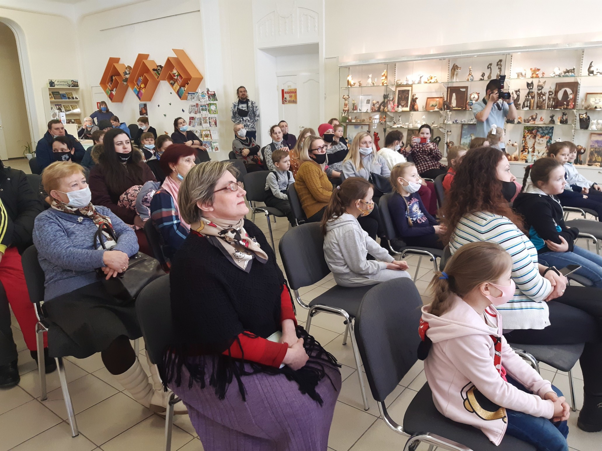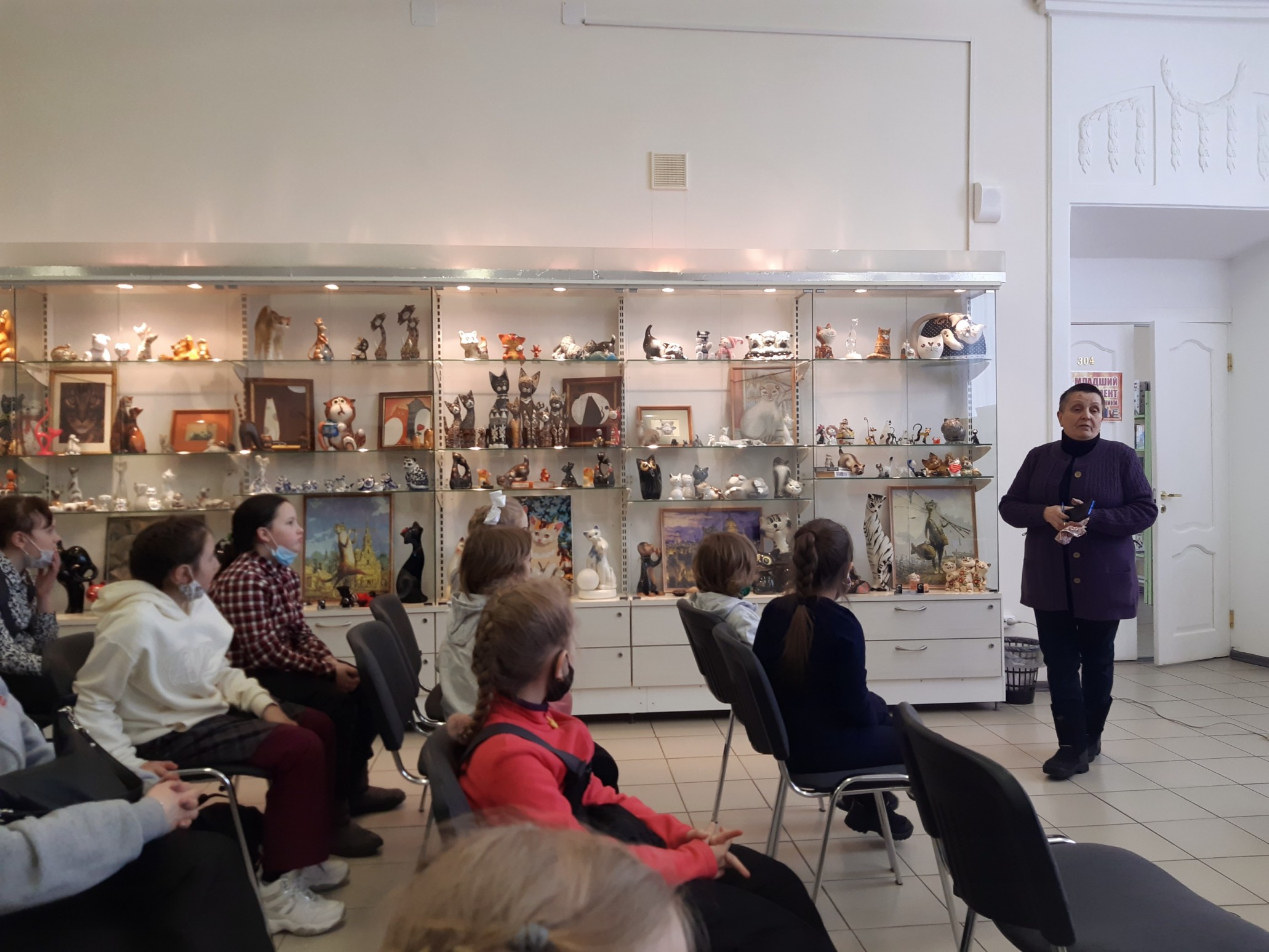 Логичным продолжением праздника стало открытие выставки предметов из коллекции Ирины Валентиновны Тузовой «Без кота и жизнь не та», на которой представлены фигурки и изображения кошек выполненные в разных стилях и техниках. Автор рассказала о том, как начиналась коллекция и поведала истории самых интересных, на её взгляд, экземпляров.