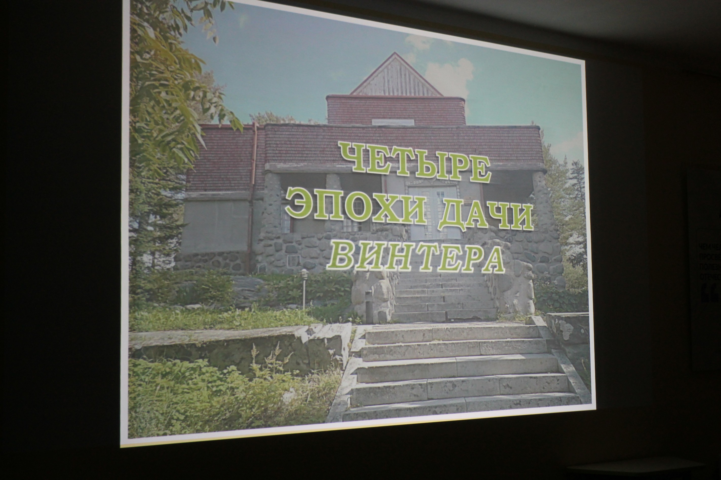 Лекция Леонтьевой Алевтины Юрьевны, заведующего отделом обслуживания Сортавальской районной библиотеки, называлась «Четыре эпохи дачи Винтера» и рассказывала о судьбе известной усадьбы.