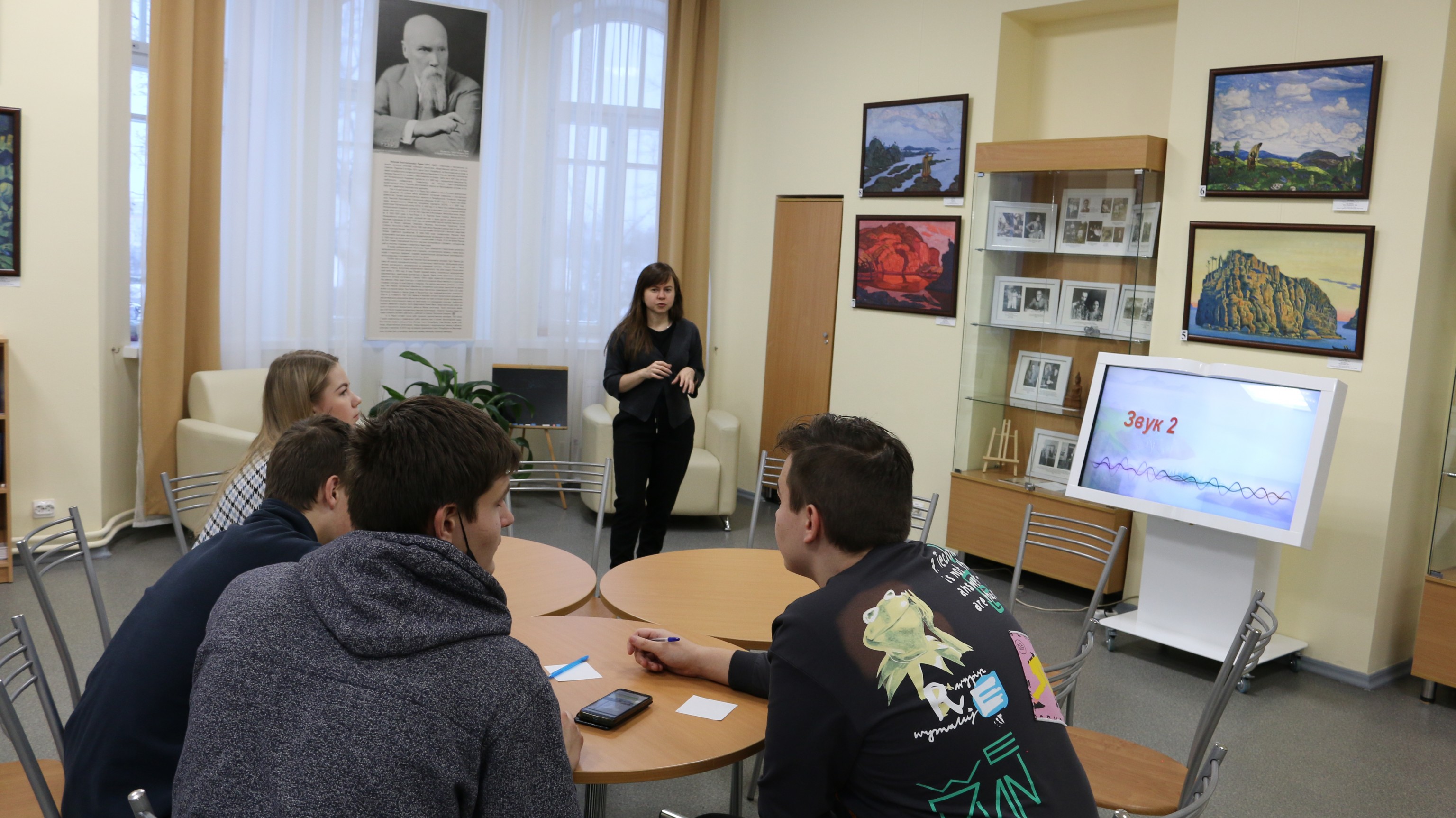 - На станции «Интерактивная панель» на базе Приладожского центра Н.К. Рериха участники должны были соотнести звуки с картинами Рериха.