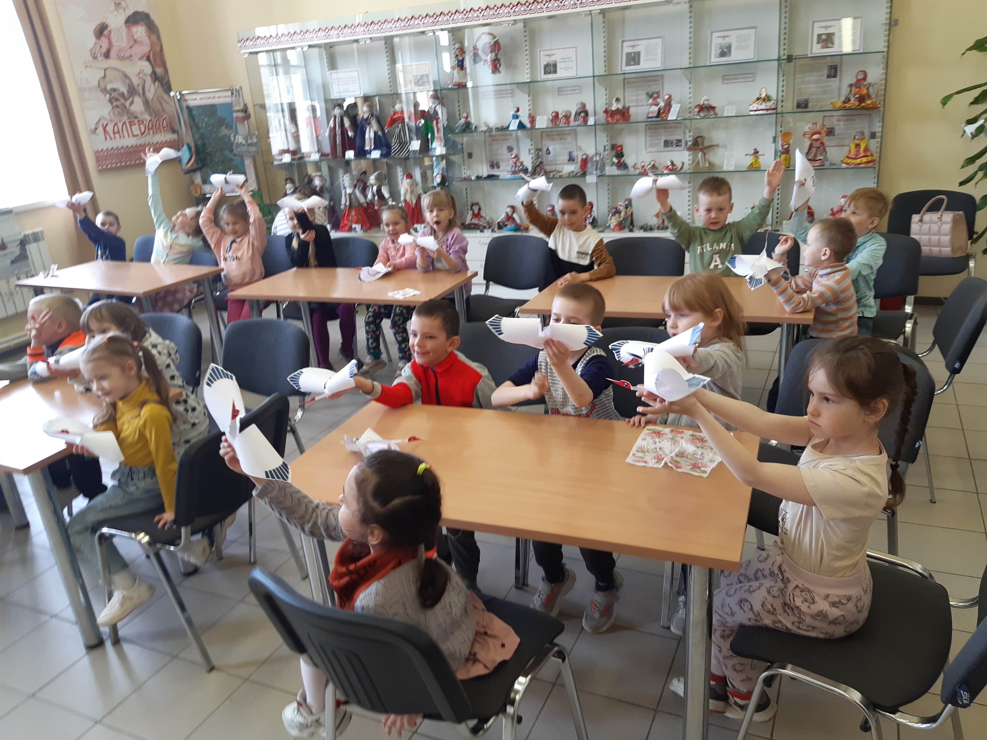 17 мая Этнокультурный зал «Karjalan palaine» («Кусочек Карелии») Сортавальской районной библиотеки посетили воспитанники детского сада «Золотой ключик». Дети посмотрели кукольный спектакль «Легенды о Куркиёкских журавлях», основанный на фольклоре Северного Приладожья, а также стали участниками акции «На литературной высоте», приуроченной к празднованию Дня Победы и 100-летнему юбилею аварского советского поэта Расула Гамзатова в 2023 году.