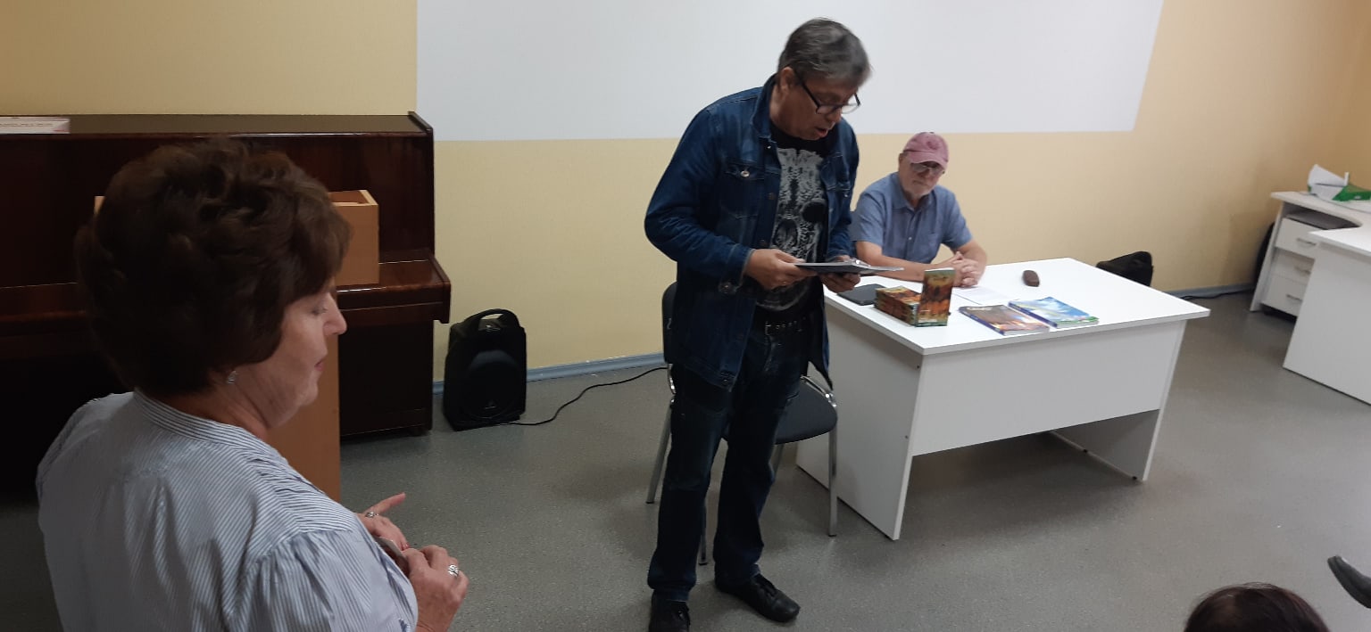 «Хочу поблагодарить коллектив библиотеки и персонально заведующую краеведческим отделом Зайцеву Наталью Ивановну за теплый прием и организацию представления моего сборника очерков "Легенды Валаама". Собрать читателей в сегодняшние времена не просто. То, что это случилось - показатель популярности библиотеки и прекрасной работы коллектива. В благодарность за прием мною подарен рисунок валаамского художника Константина Ушакова. Рисунку 36 лет, на нем изображена островная ферма 1994 года, зимой. Желаю дальнейших успехов коллективу в просвещении своих земляков и гостей исторического города Сортавала».