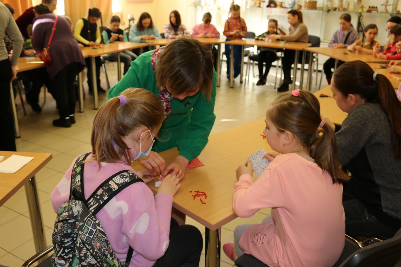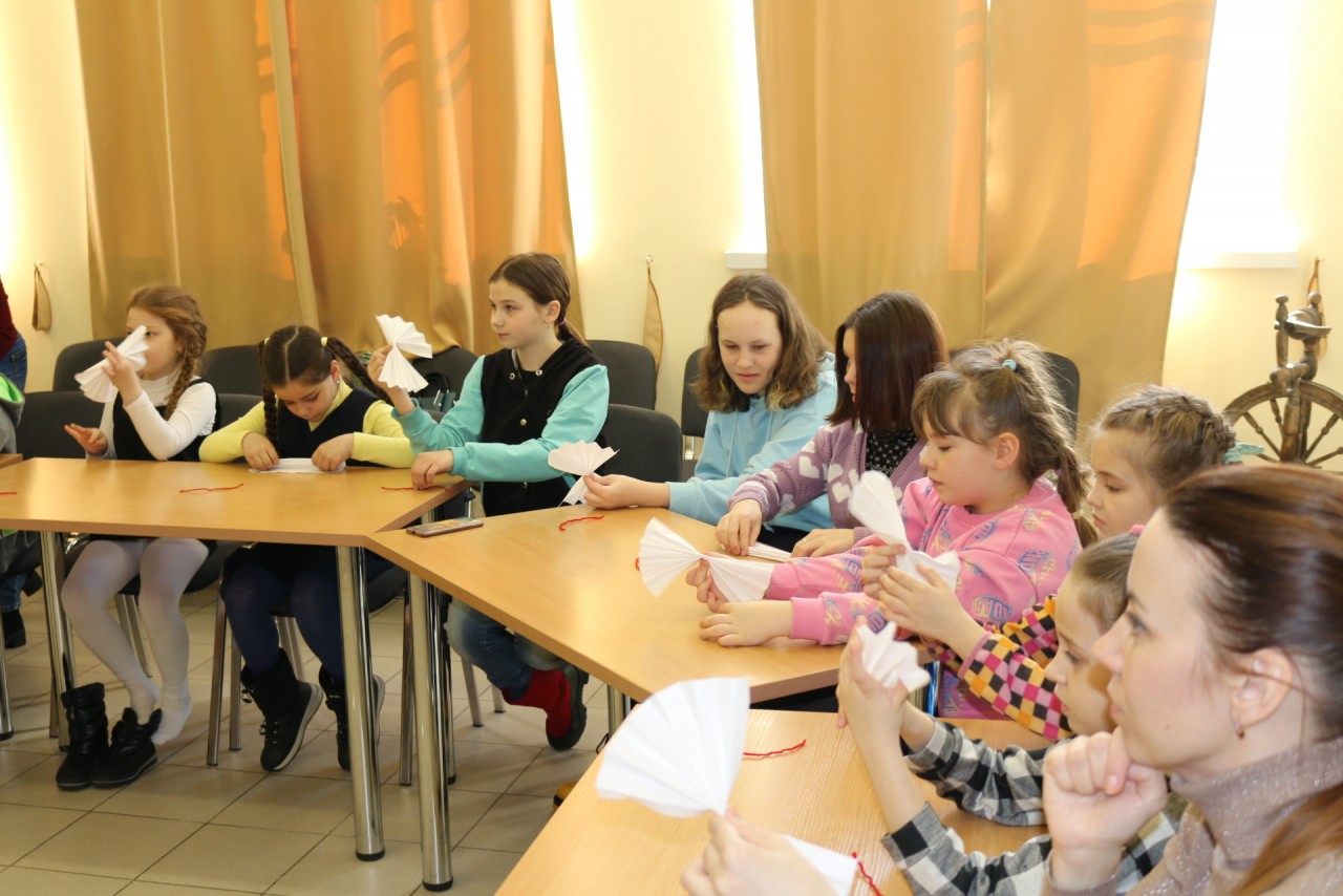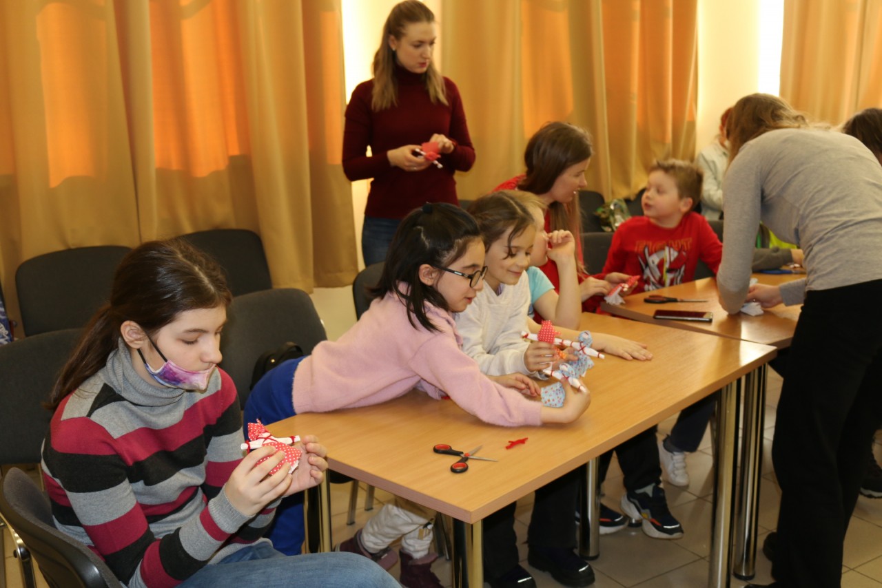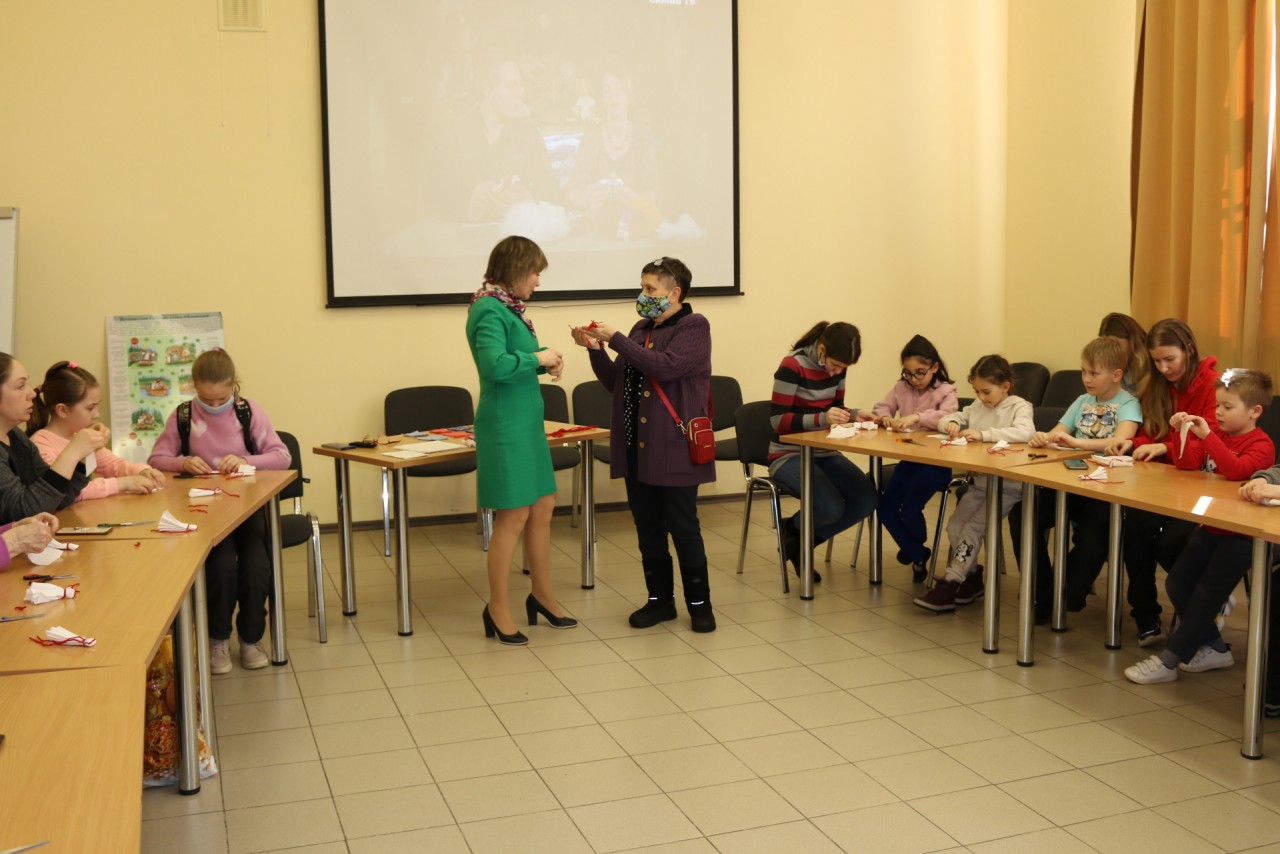 Оказывается, занятие по изготовлению куклы увлекательно для людей всех возрастов. Поэтому пришли от мала до велика, и мальчики и девочки, и по одному и семьями. Ишукова Т. В. рассказала и показала фильм о видах карельской куклы и их назначении. Зрители с интересом и удивлением открыли для себя много нового. Ведь обереговая кукла – это не просто голова, ручки и ножки. В ней вложен большой духовный смыл. О чём будешь думать во время создания куклы, такую энергию она и понесёт. Вот с добрыми мыслями все и приступили к работе. Гости очень старались. Взрослые помогали малышам завязывать узелочки. Несмотря на то, что материал у всех был одинаковый, куклы получились разные. Это и правильно. Ведь и мы все разные. Во все времена кукла не только оберегала и развлекала ребёнка, но и учила будущей взрослой жизни.