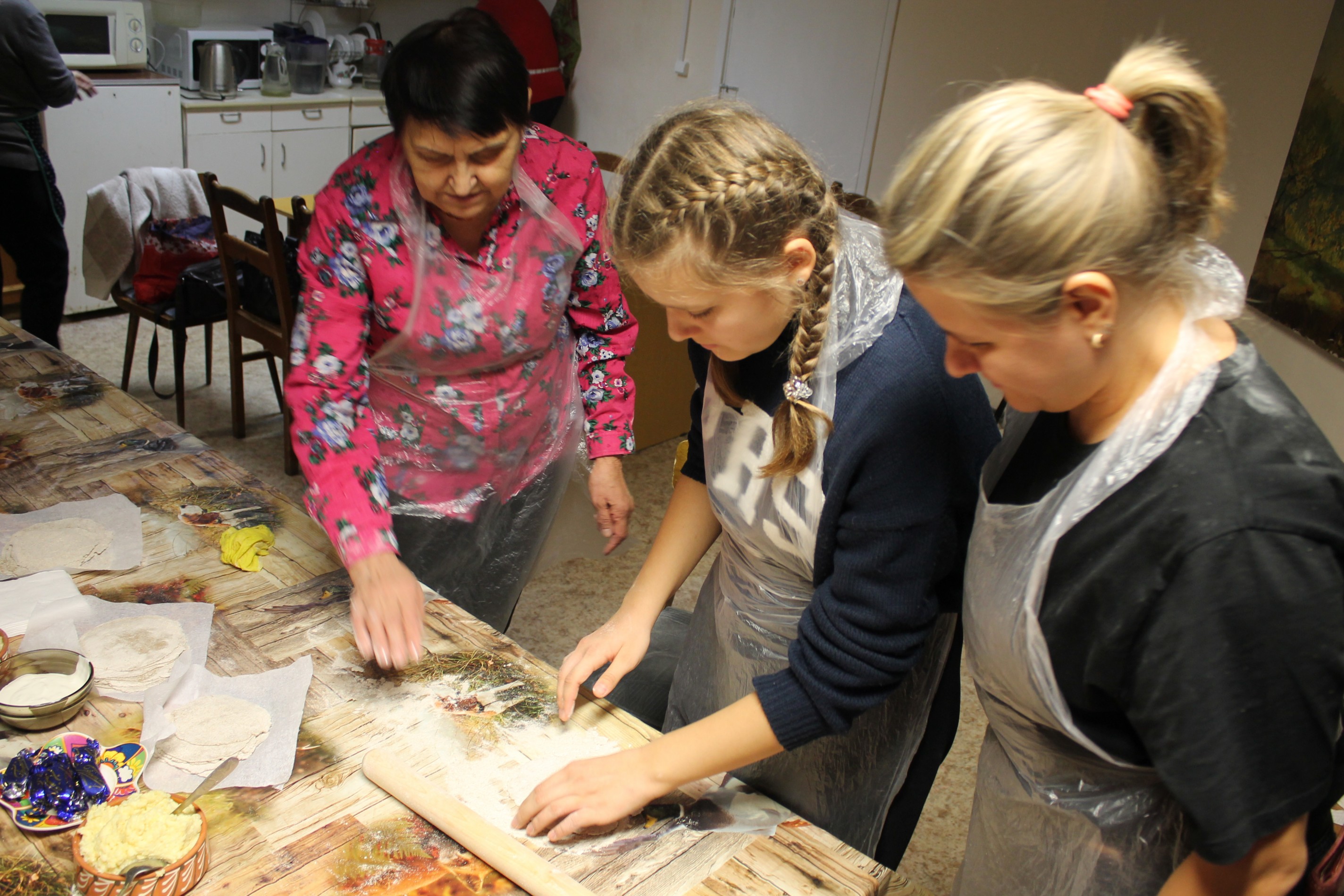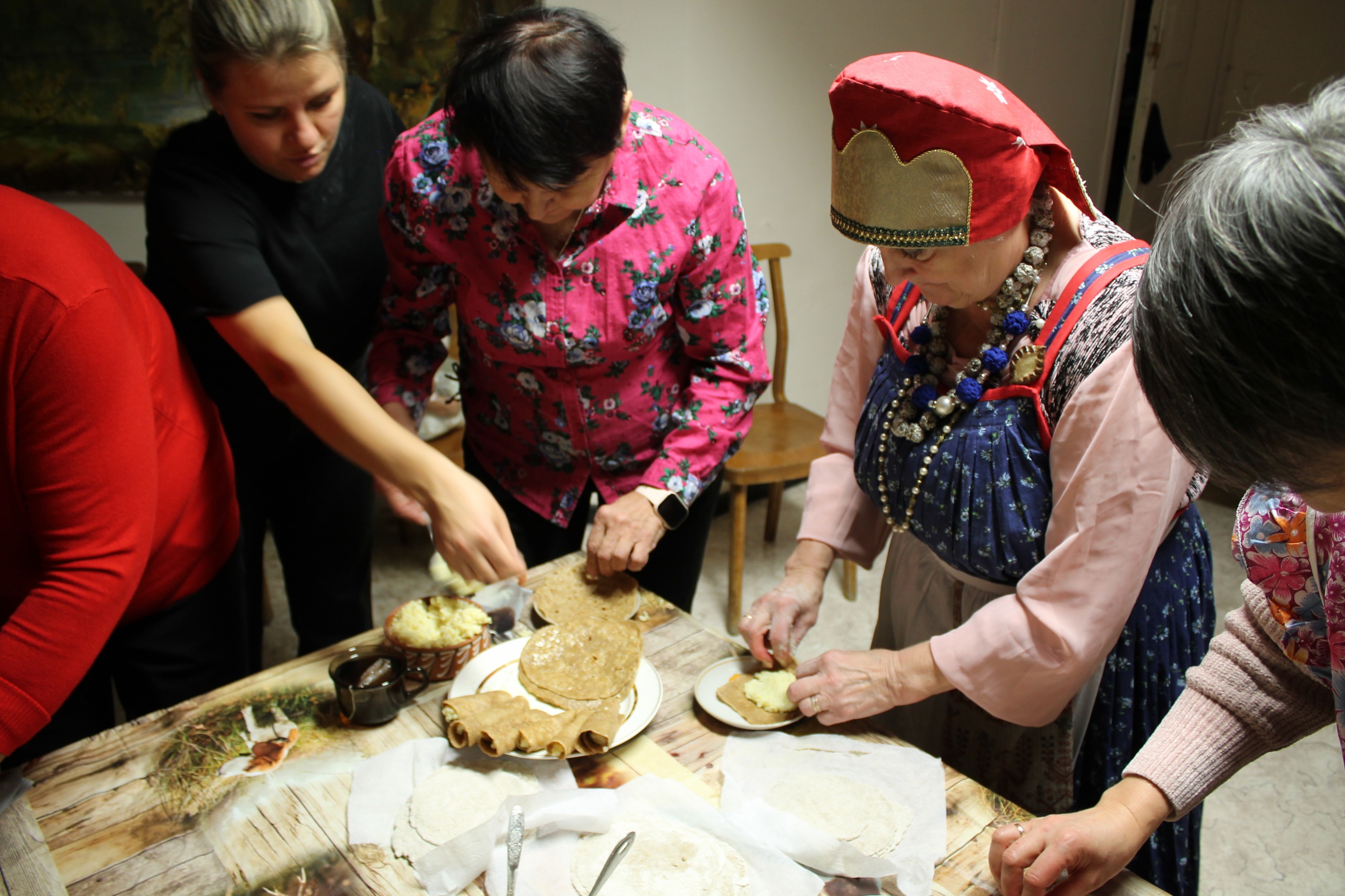 19 ноября в Сортавальской районной библиотеке в рамках проекта «Карельская горница» прошел очередной вкусный мастер-класс. На этот раз хозяйка этнокультурного зала «Karjalan palaine» («Кусочек Карелии») Алла Михайловна Силкина рассказала, как приготовить сканцы (очень тонкие хрустящие лепешки).