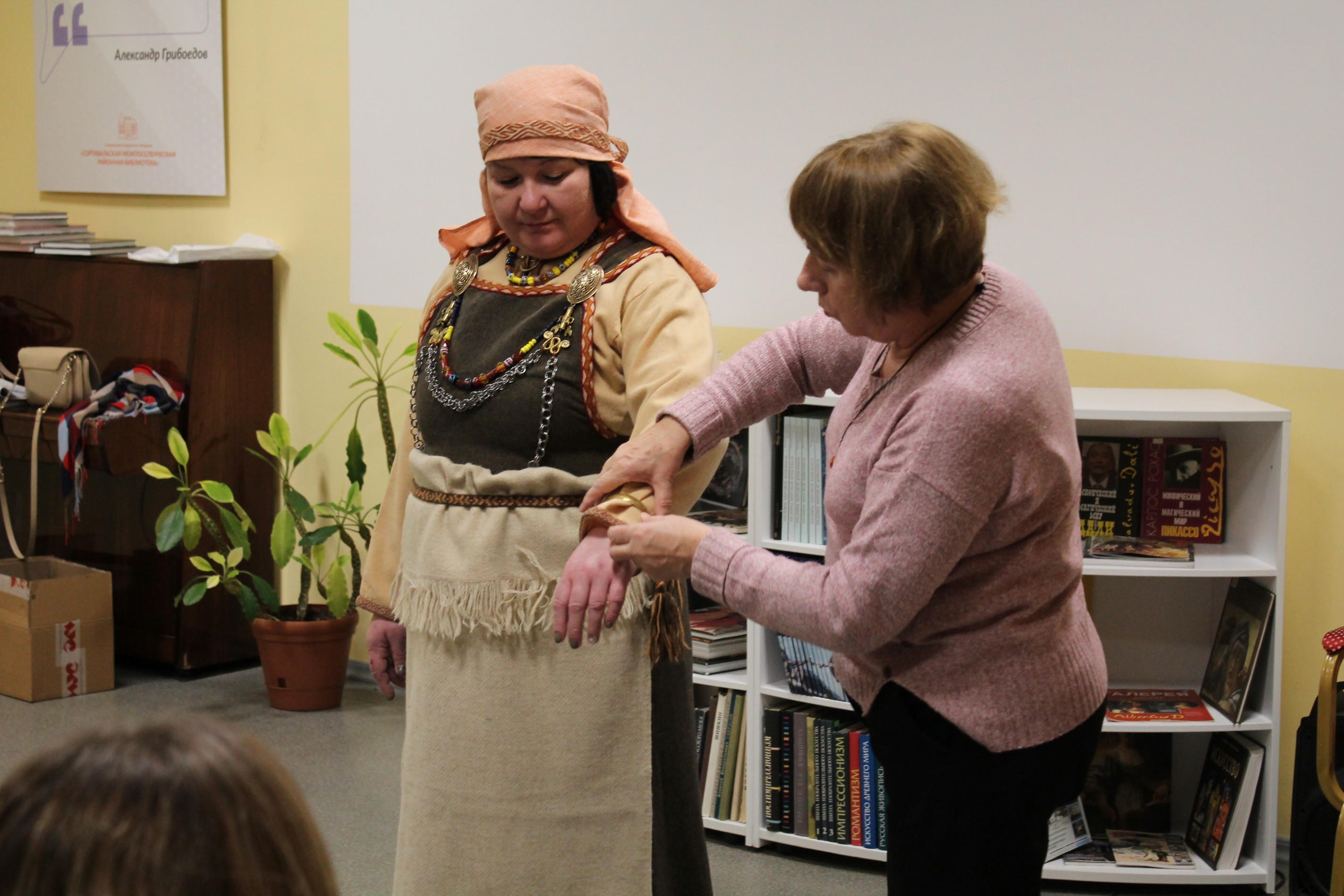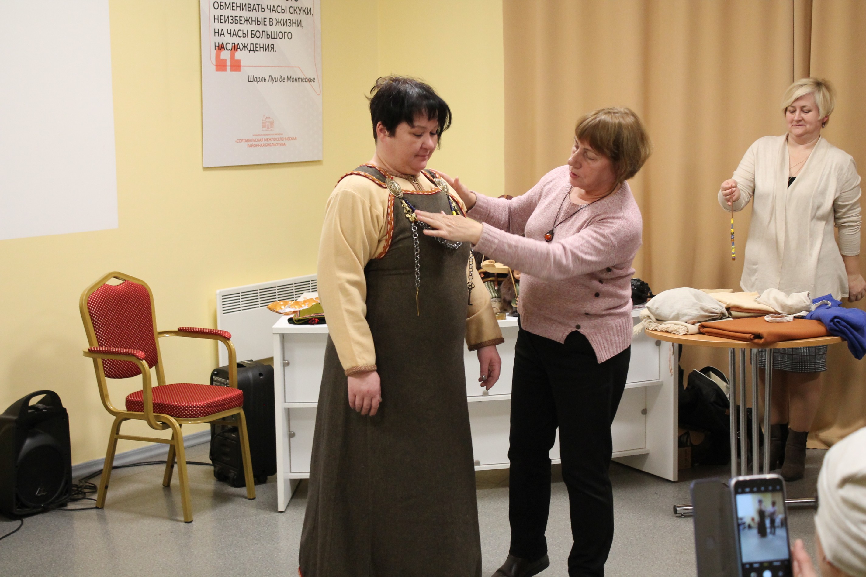 Она рассказала о предназначении каждой детали в традиционном карельском костюме. Под её руководством участники мастер-классов совершили историческое путешествие в древнюю Карелию.