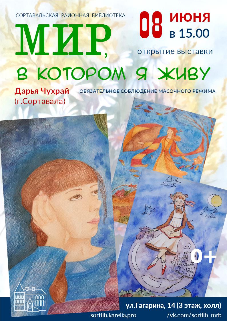 8 июня в библиотеке состоялось открытие персональной выставки юной Сортавальской художницы Дарьи Чухрай под названием «Мир, в котором я живу».