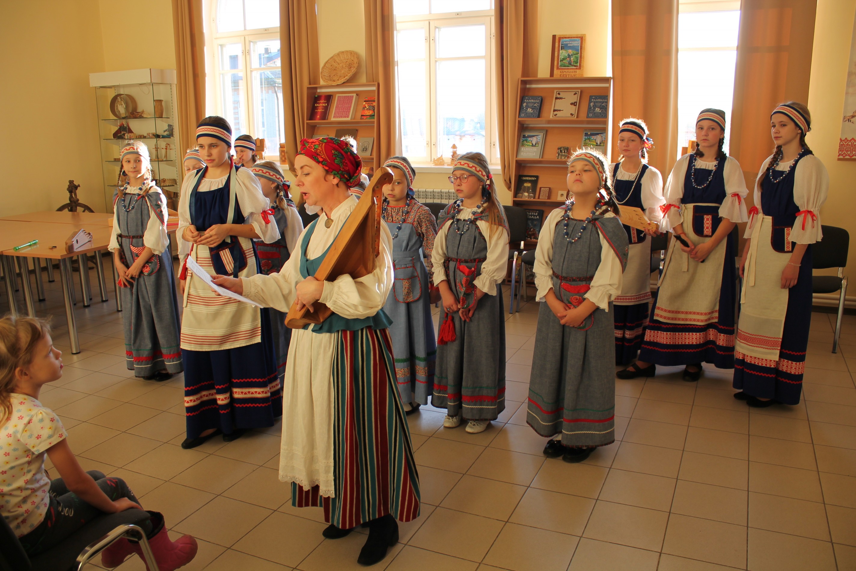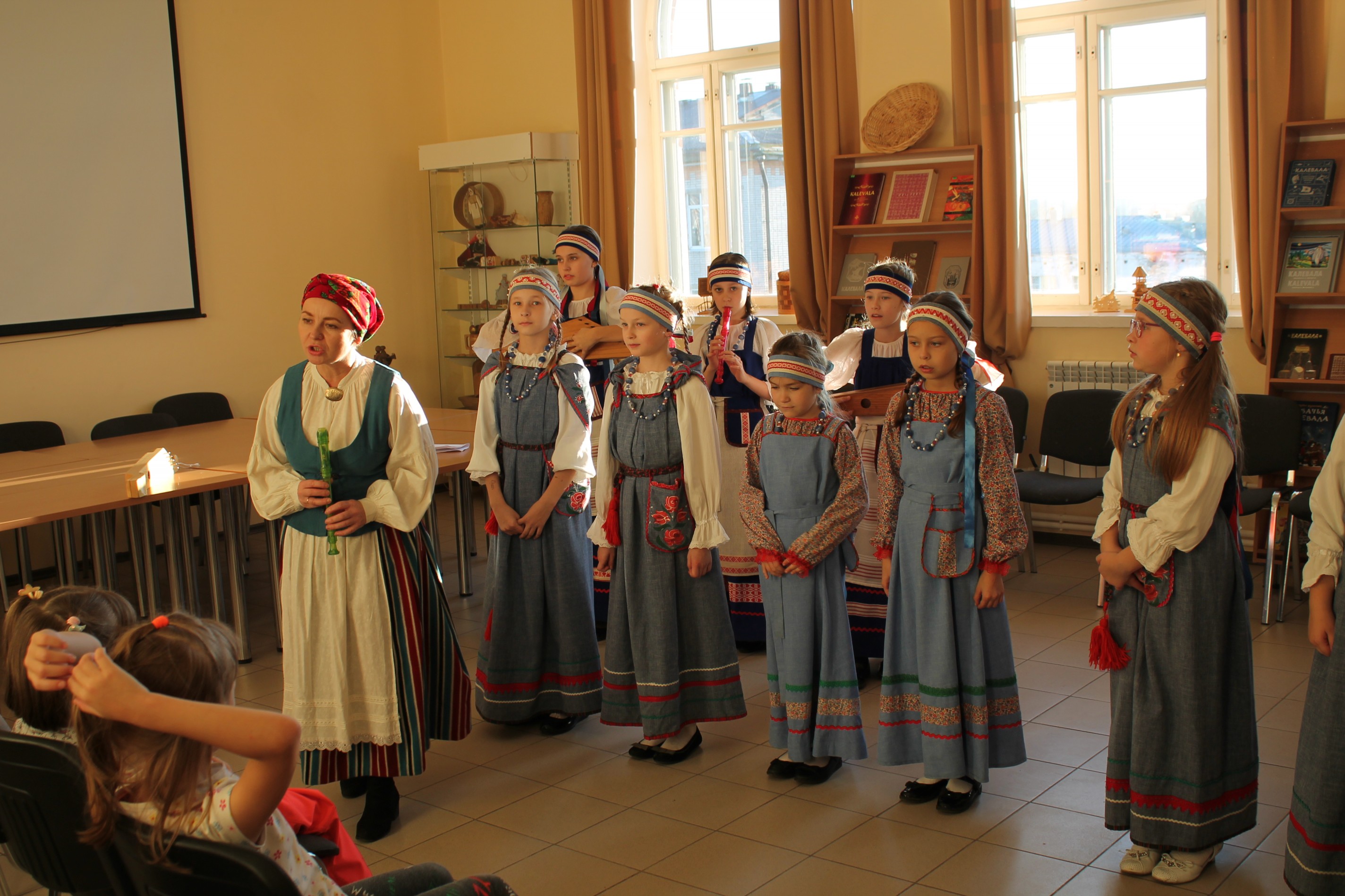 Музыкальные фольклорные гостиные для детей. 21 октября в Сортавальской районной библиотеке прошло первое занятие из цикла фольклорных музыкальных гостиных для детей, организованных Обществом карелов Сортавальского муниципального района совместно с Сортавальской районной библиотекой и фольклорным ансамблем «Матица».