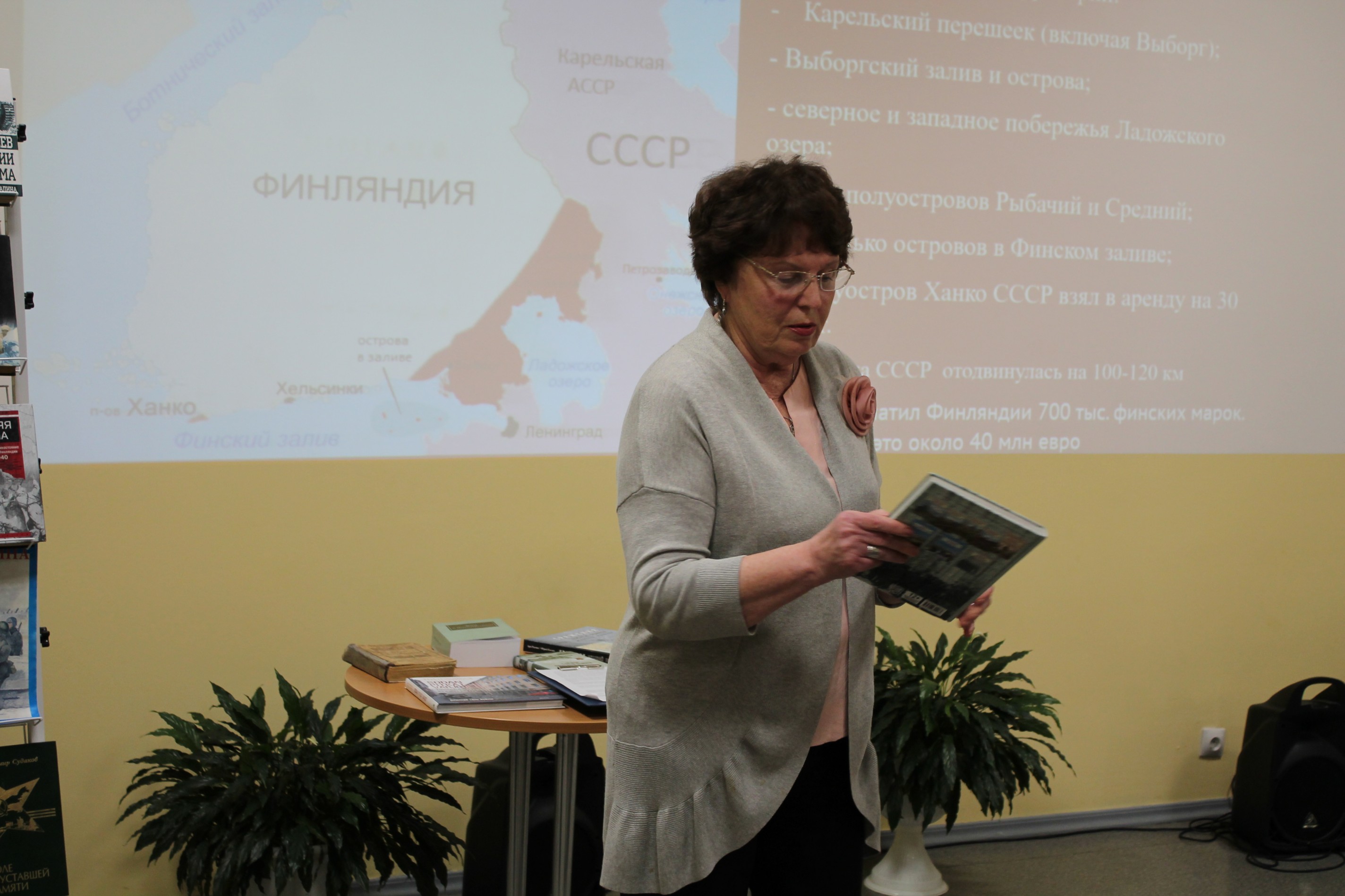 Главный библиотекарь Краеведческого центра Зайцева Наталья Ивановна рассказала об историческом контексте, предпосылках и итогах «незнаменитой» войны, а также об изданиях, посвященных данной теме, которые есть в фонде нашей библиотеки.