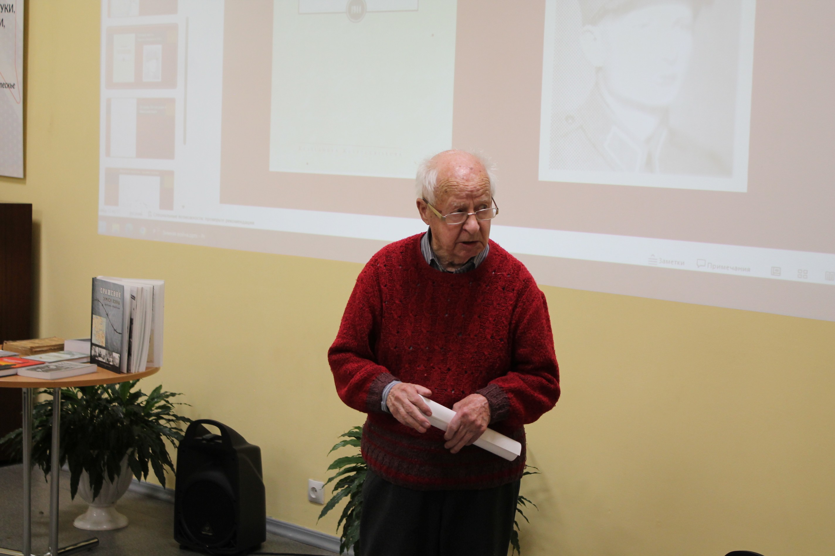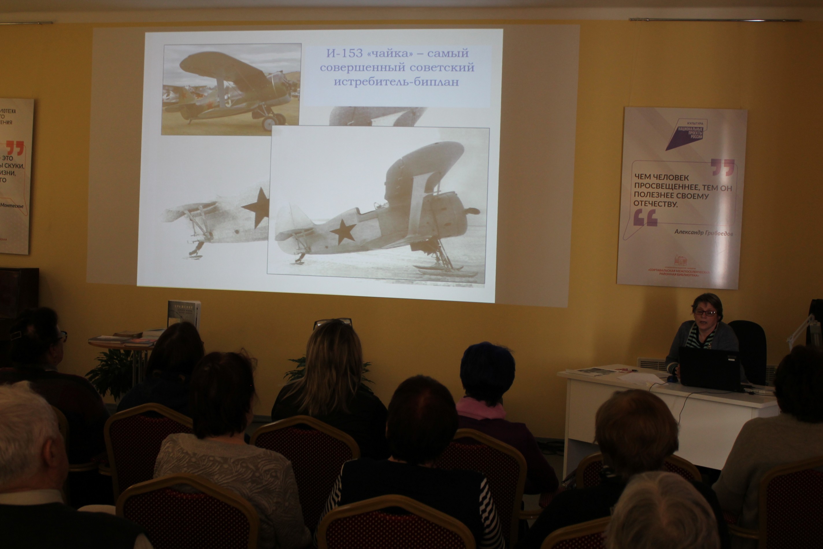 Заведующий отделом обслуживания центральной библиотеки, Леонтьева Алевтина Юрьевна рассказала о промежуточных итогах исследования истории 153-его истребительного авиационного полка. Акцент был сделан на биографии летчика этого воинского подразделения, Георгия Петровича Ларионова, который получил звание «Герой Советского Союза» за героизм, проявленный в борьбе с белофиннами.