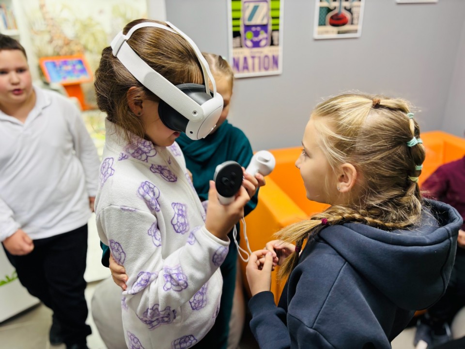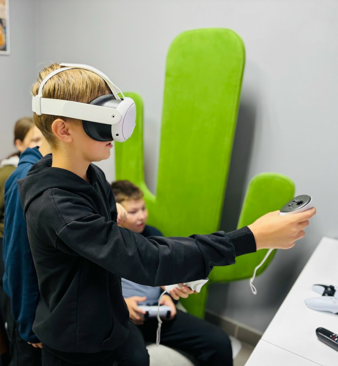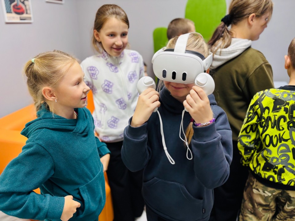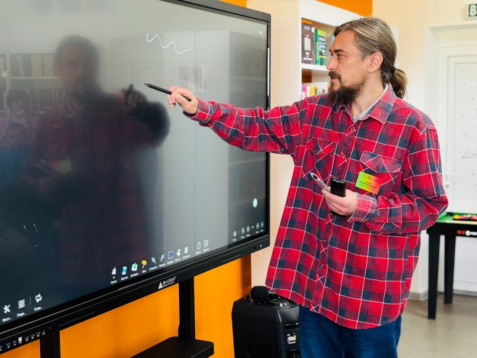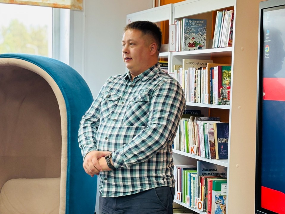 Особый интерес у юных читателей вызвала презентация инновационных технологий. Дмитрий Викторович Спащенко, программист Сортавальской центральной библиотеки, продемонстрировал, как пользоваться интерактивным оборудованием (киоском, панелями, столами), интерактивным комплексом «5 в 1», игровой консолью PlayStation 5 и VR-очками. Новое оснащение открывает перед посетителями широкие возможности: от образовательных программ и виртуальных экскурсий до современных форм досуга.