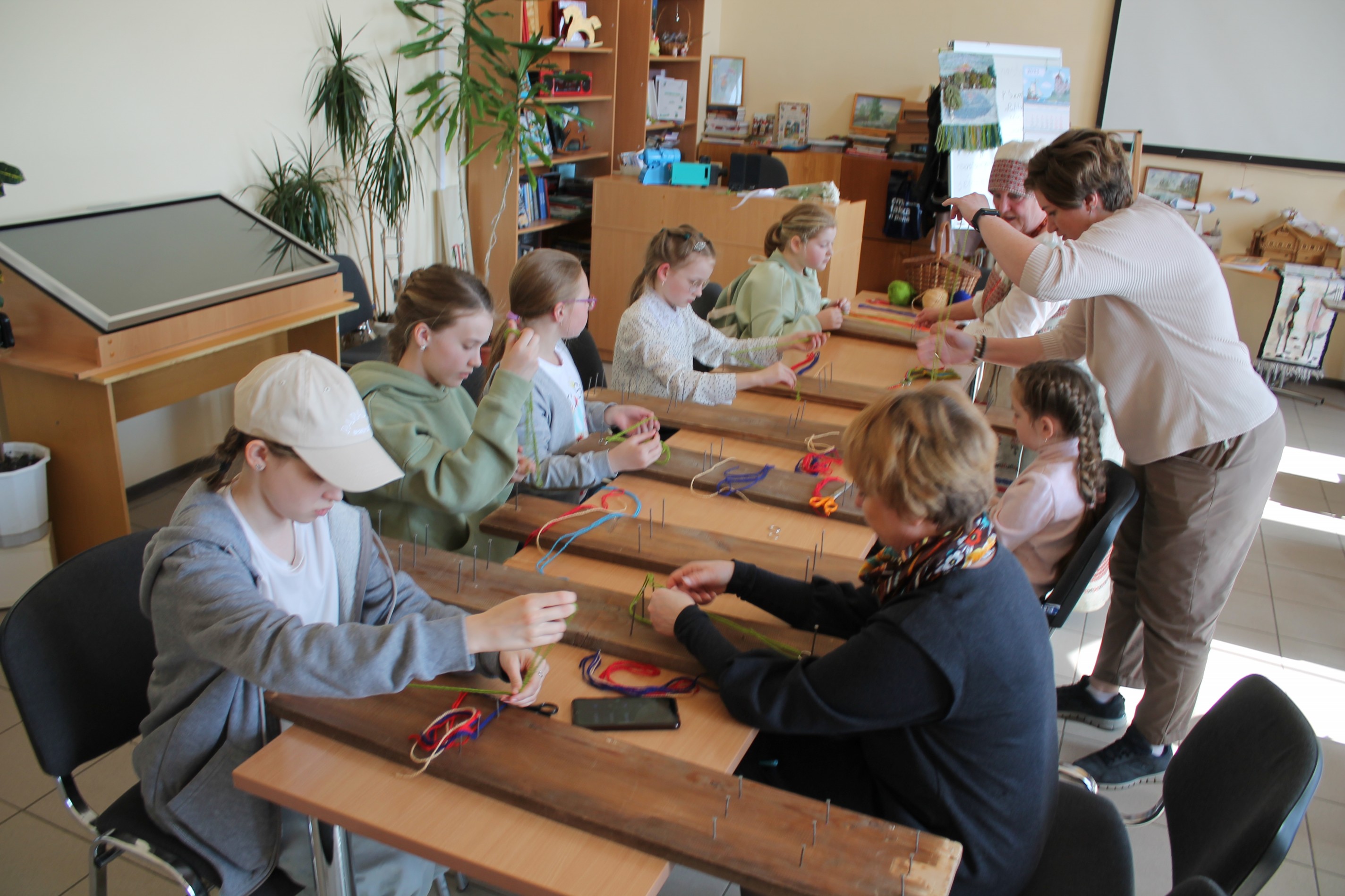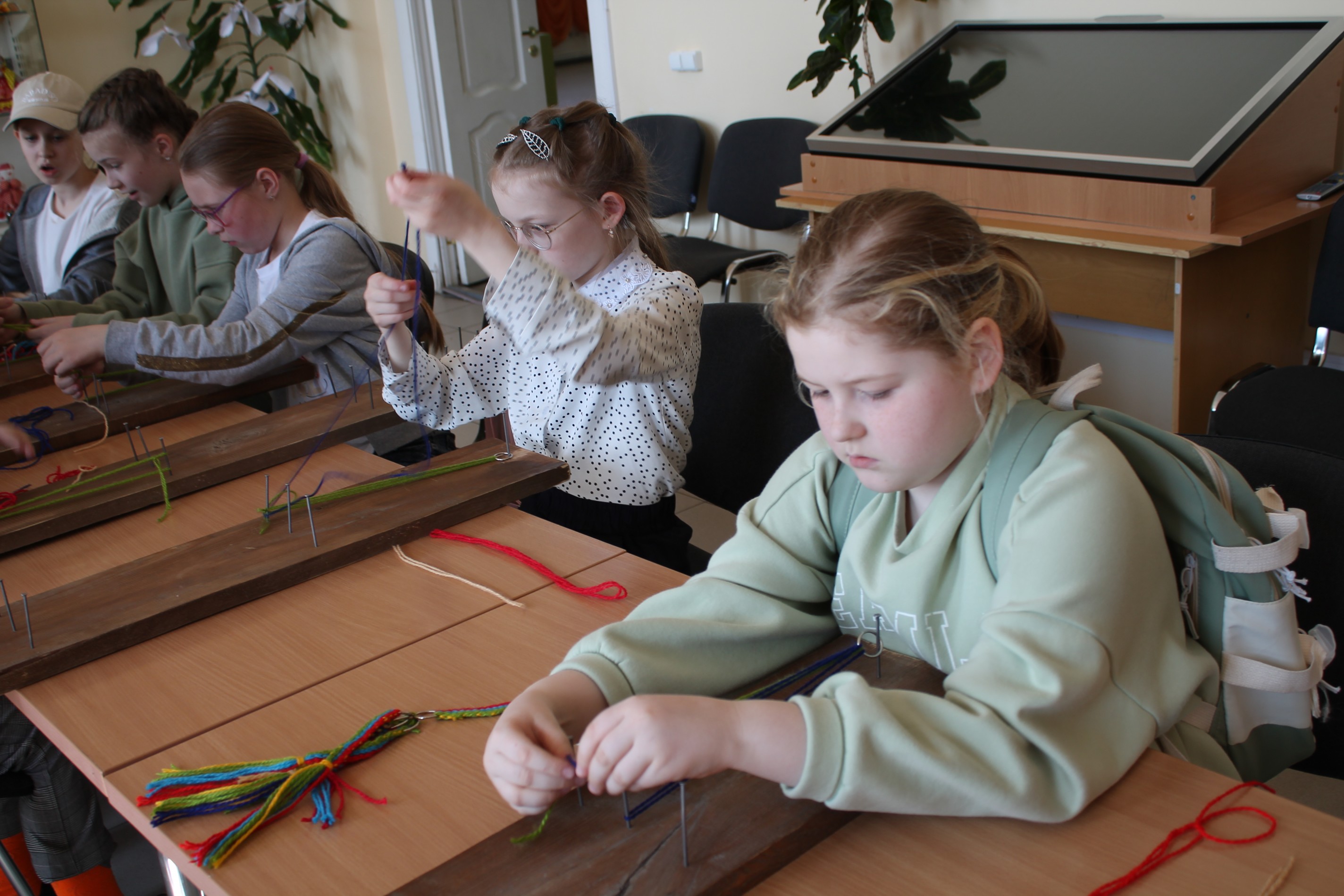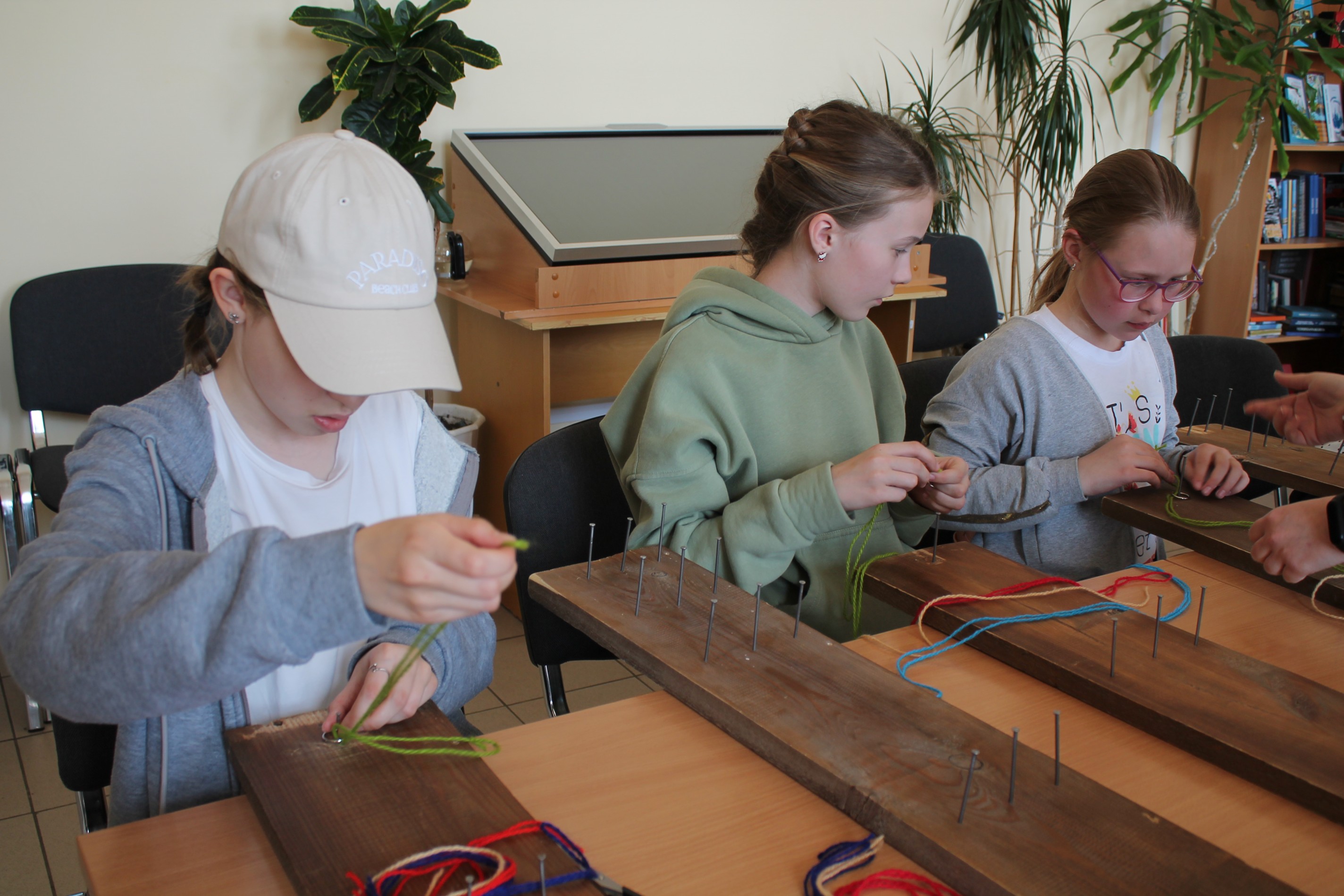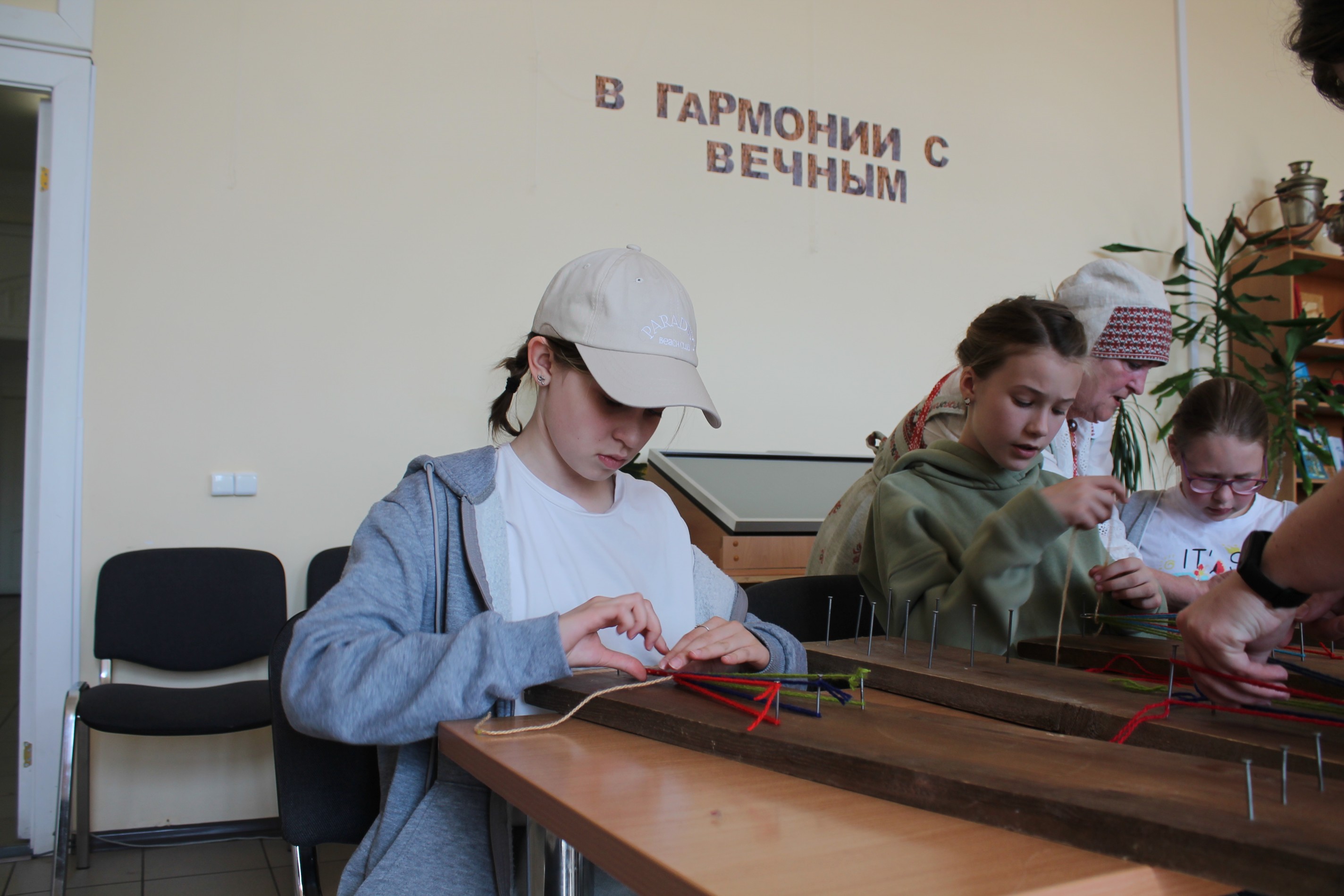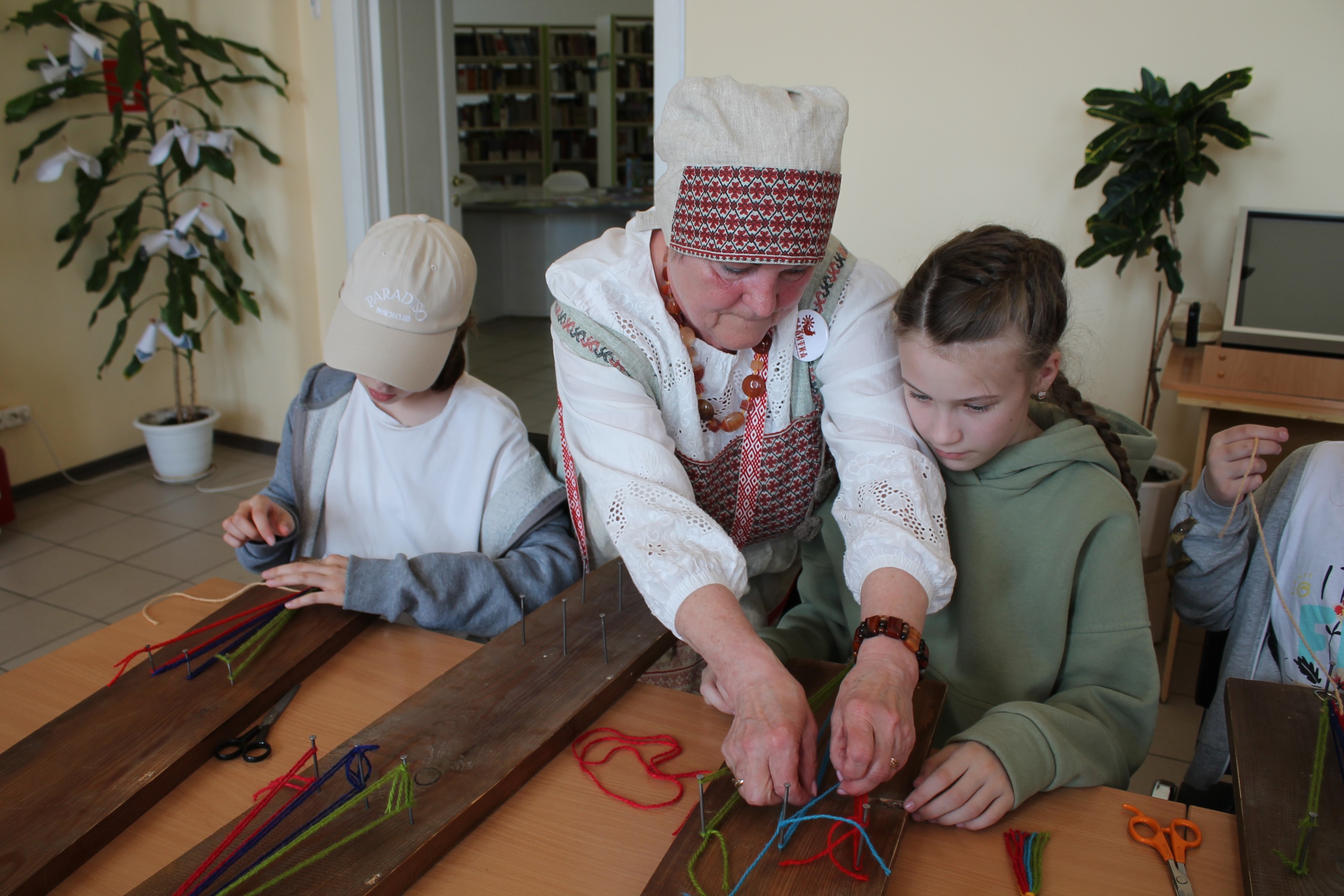 Чтобы закрепить полученные знания на практике, посетившие встречу участницы фольклорного ансамбля «Матица» вместе со своим руководителем, Маргаритой Бережной, посетили мастер-класс по плетению традиционных брелков-оберегов.