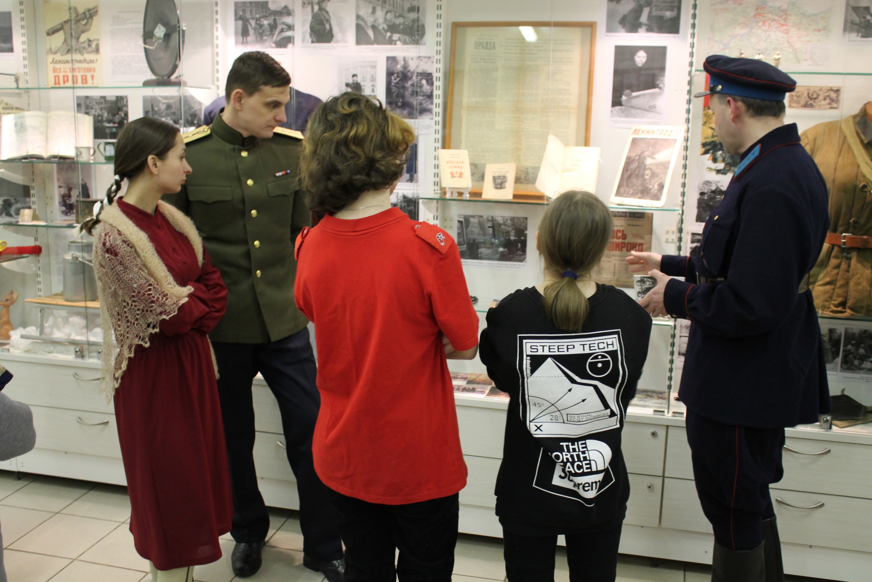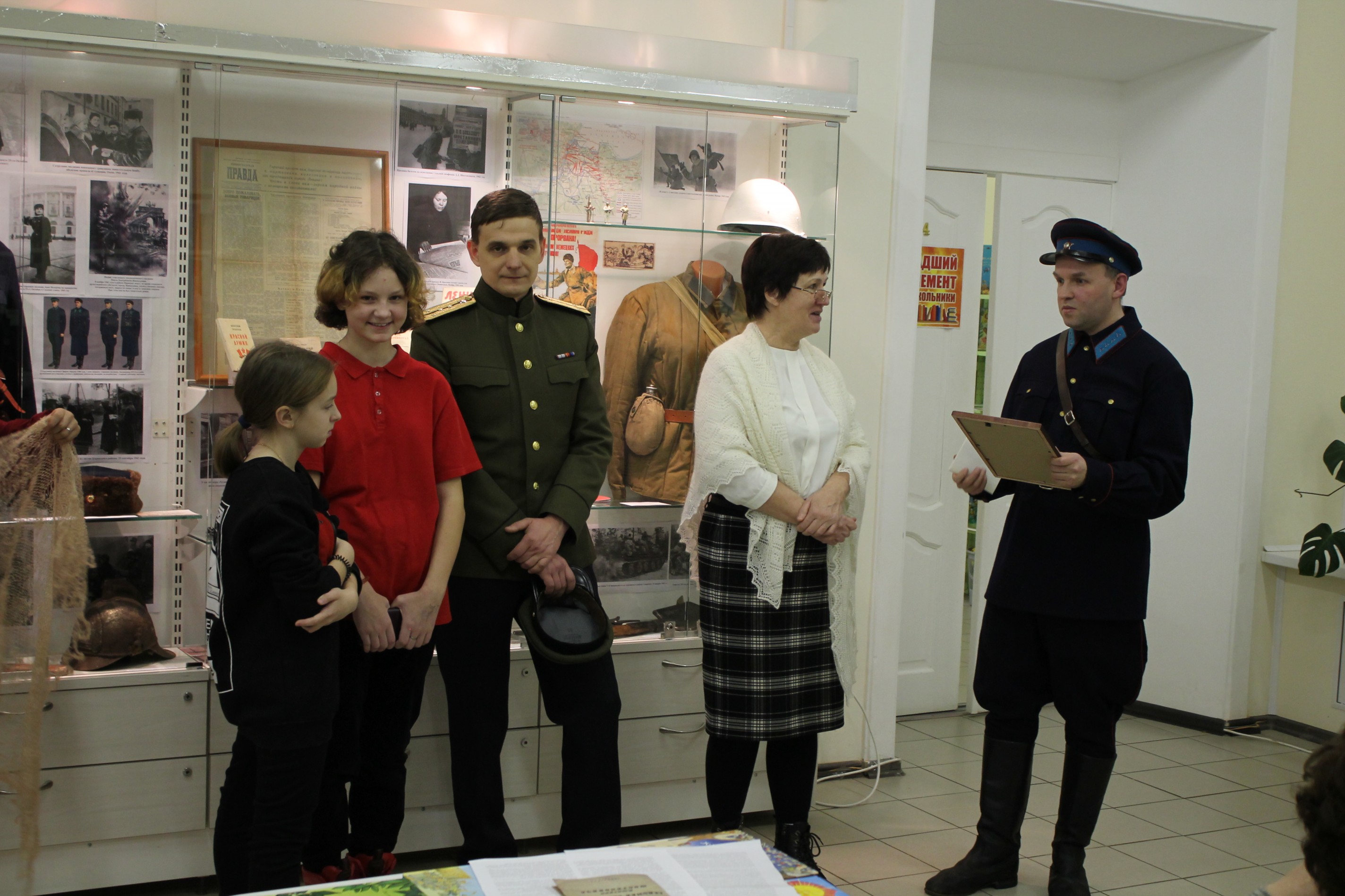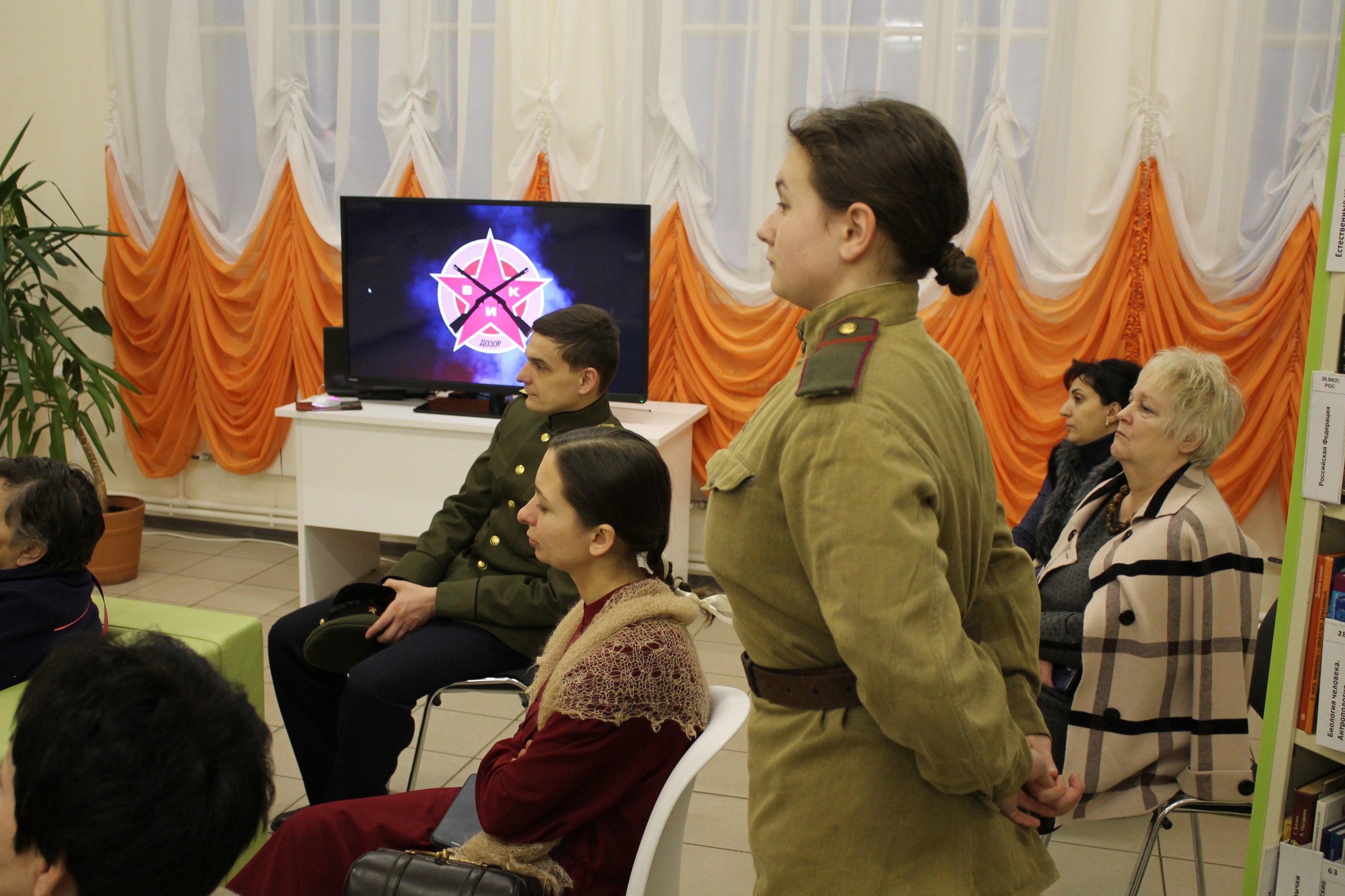 Был показан видео-материал об исторической реконструкции прорыва Блокады Ленинграда, в которой участвовали члены Клуба военно-исторической реконструкции «Стражник».