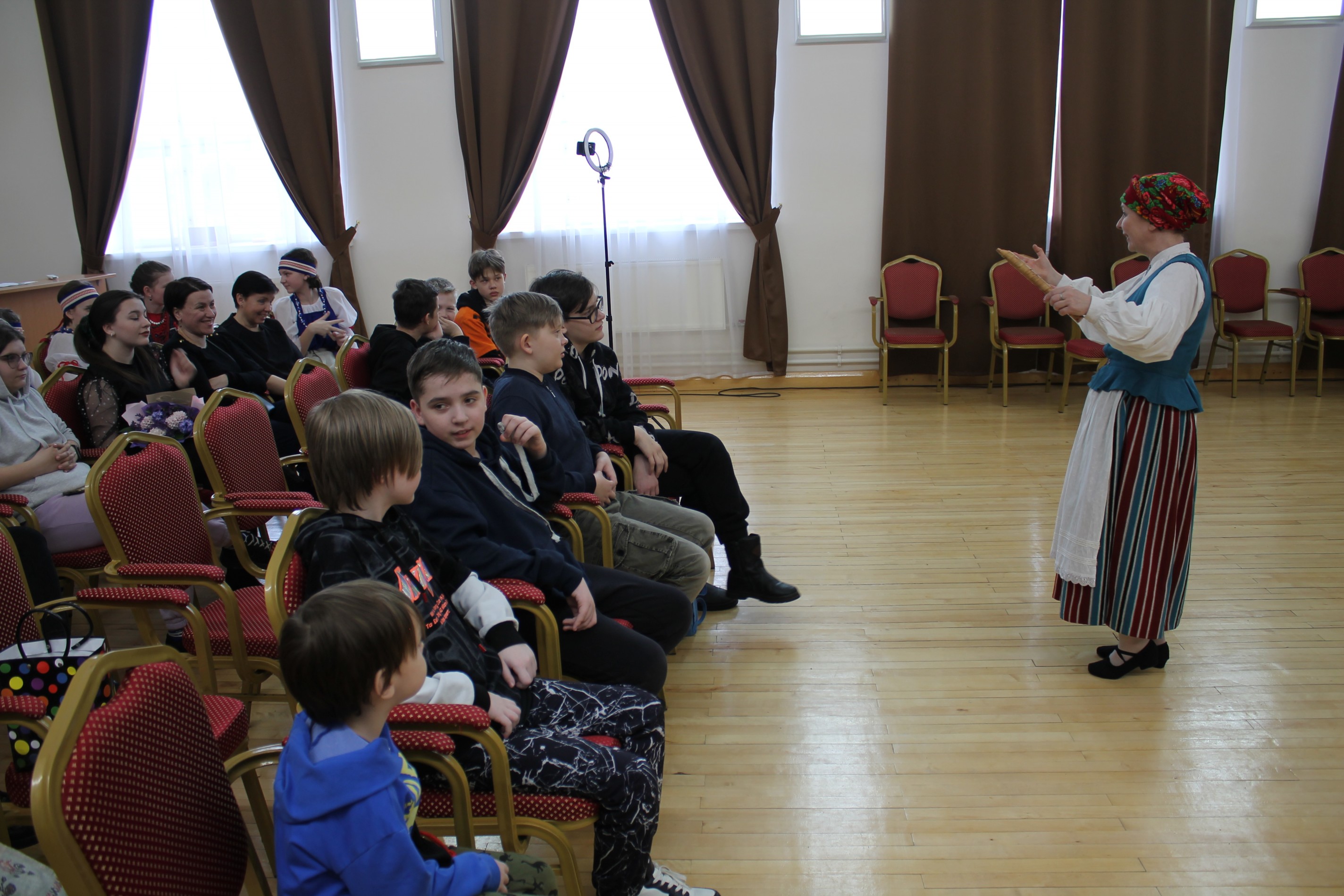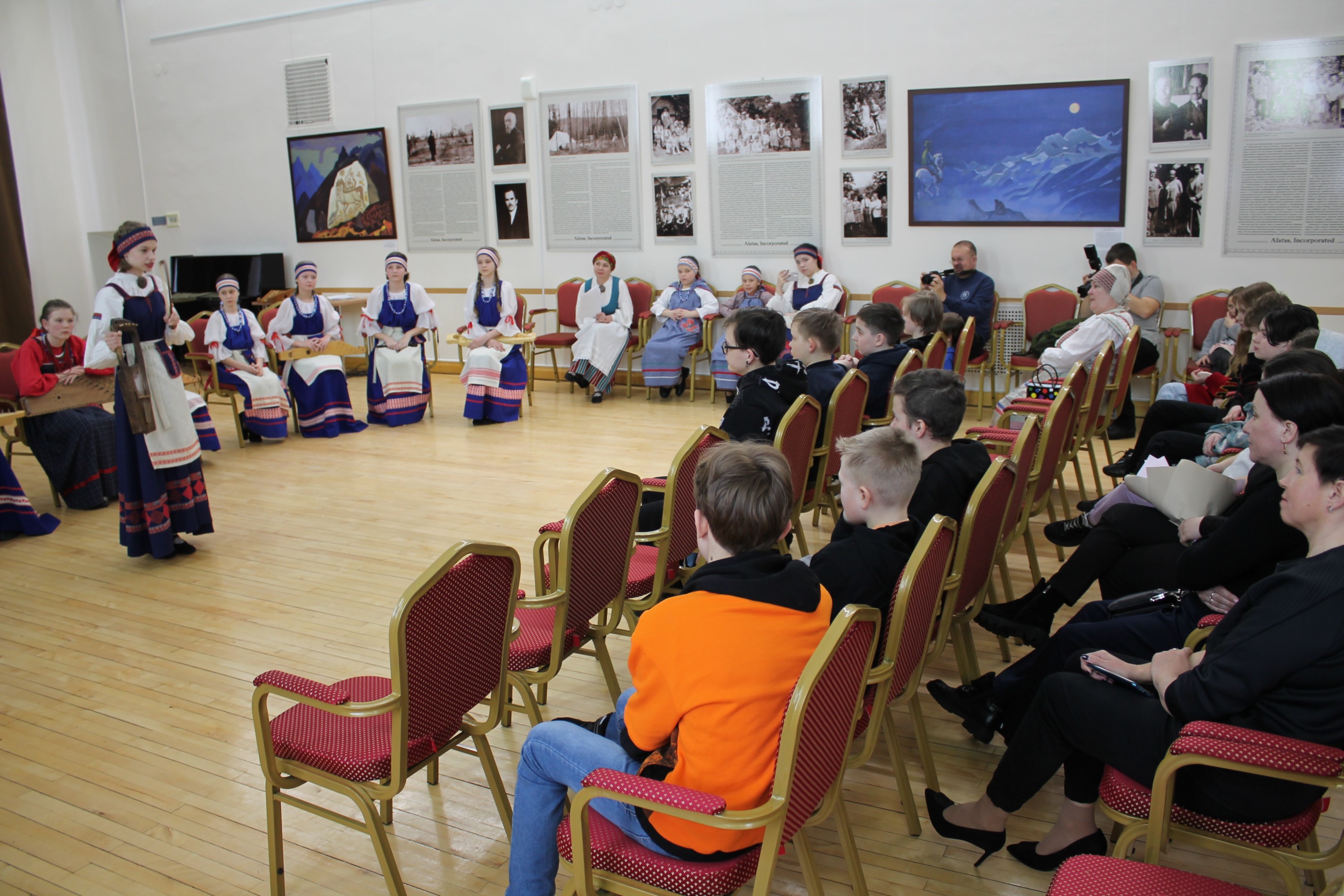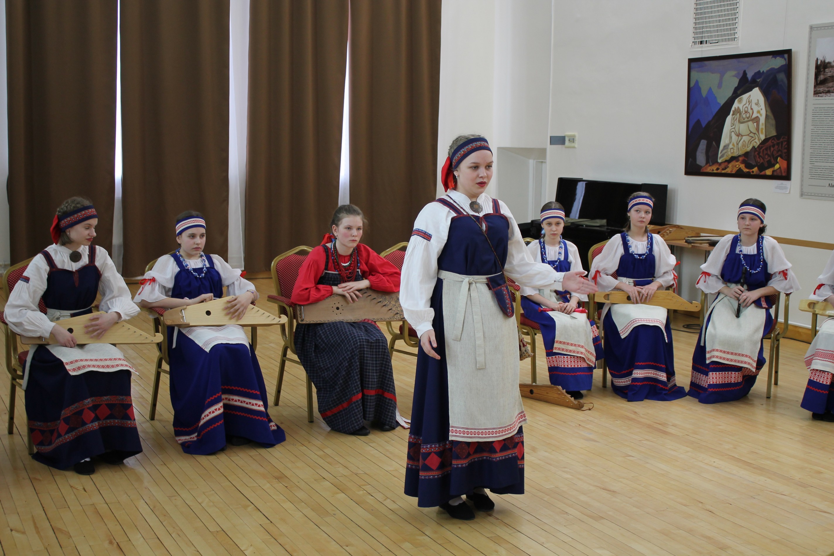 Юные участницы ансамбля «Верея» рассказали своим ровесникам об истории традиционных карельских мелодий, песен и музыкальных инструментов.