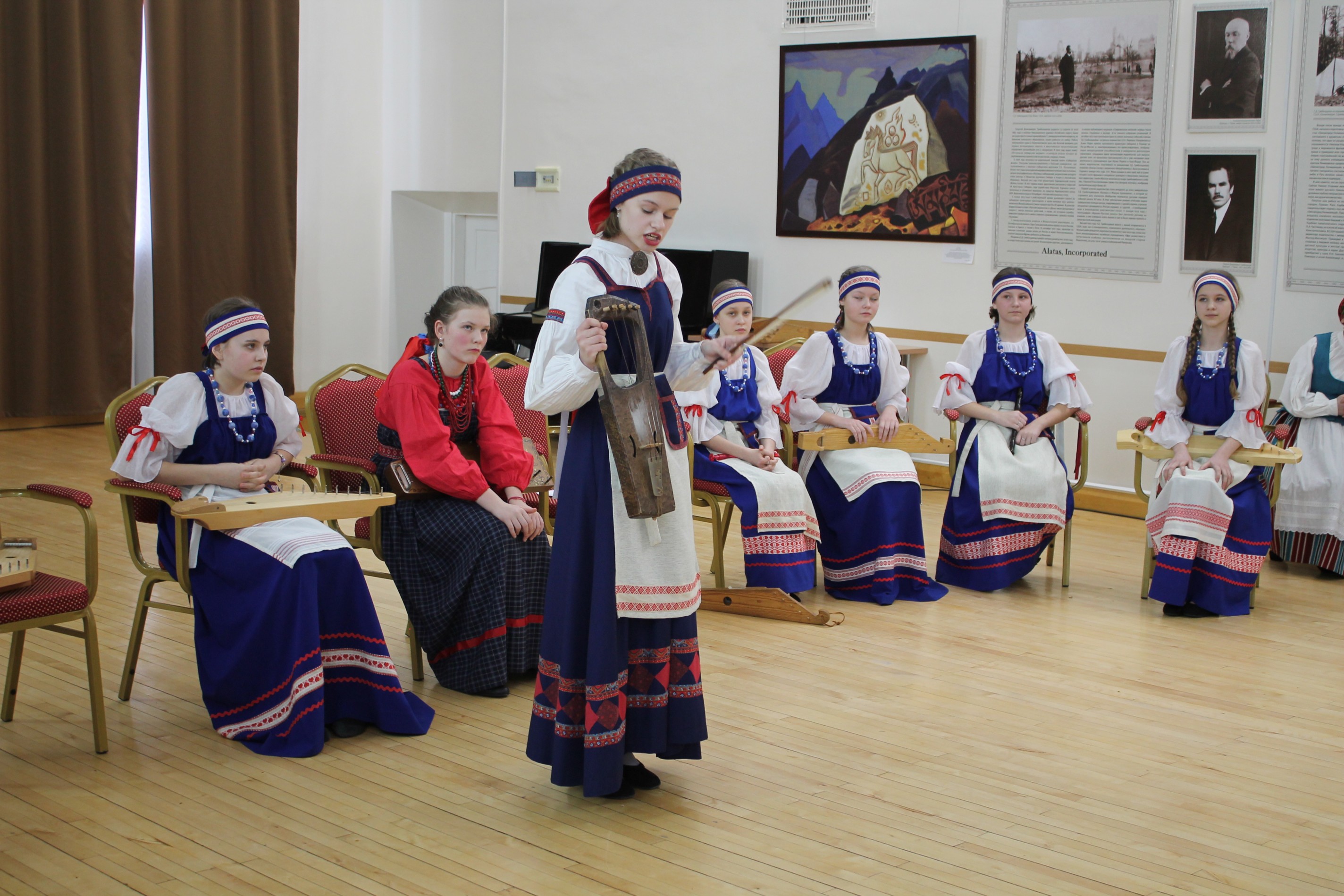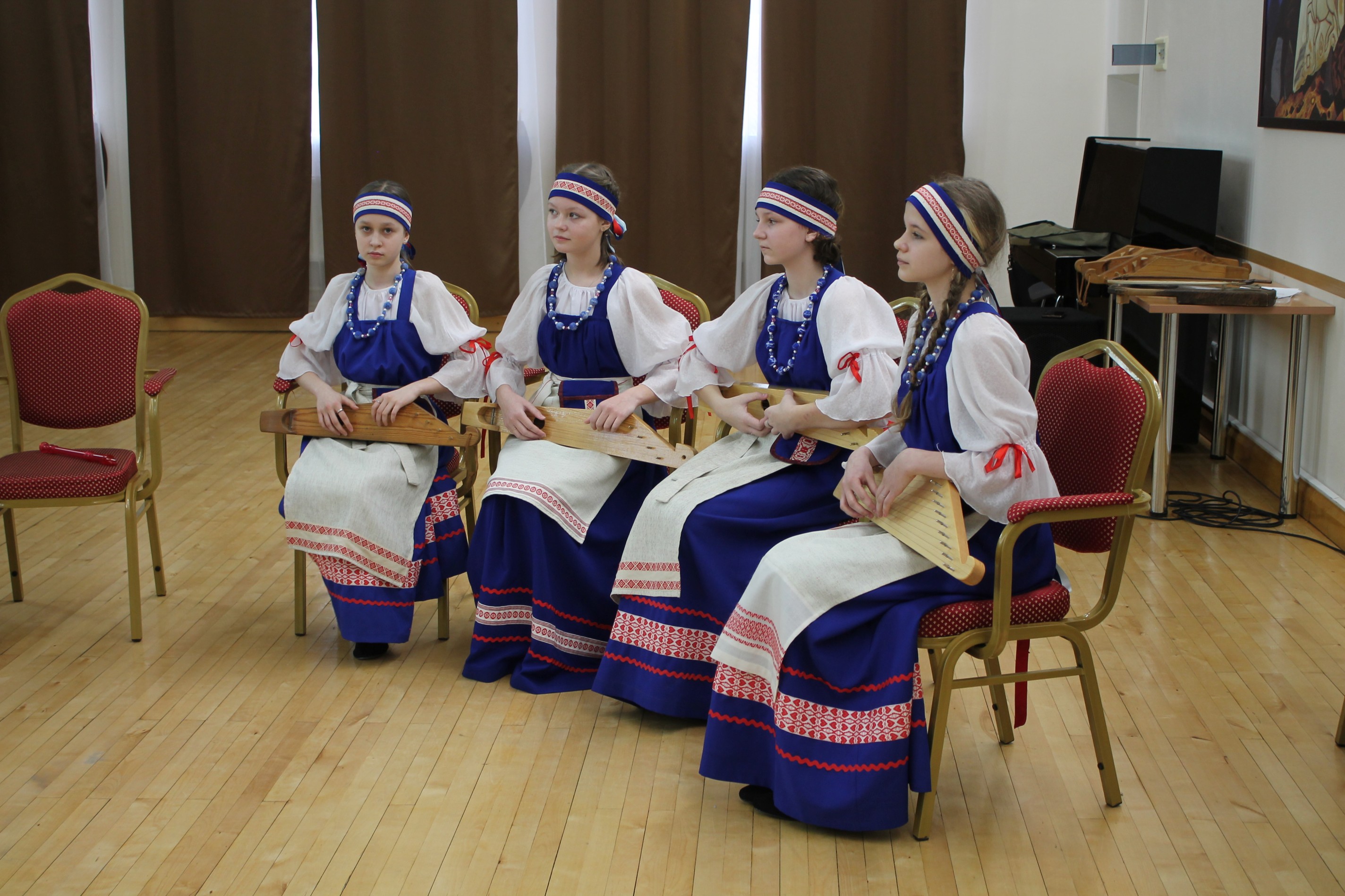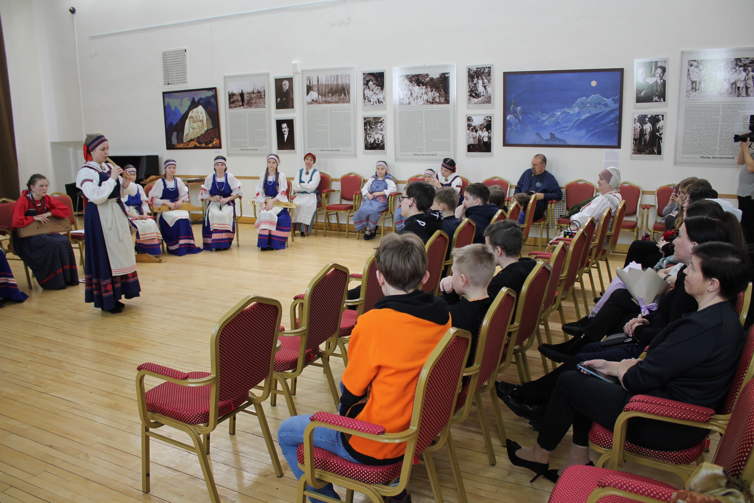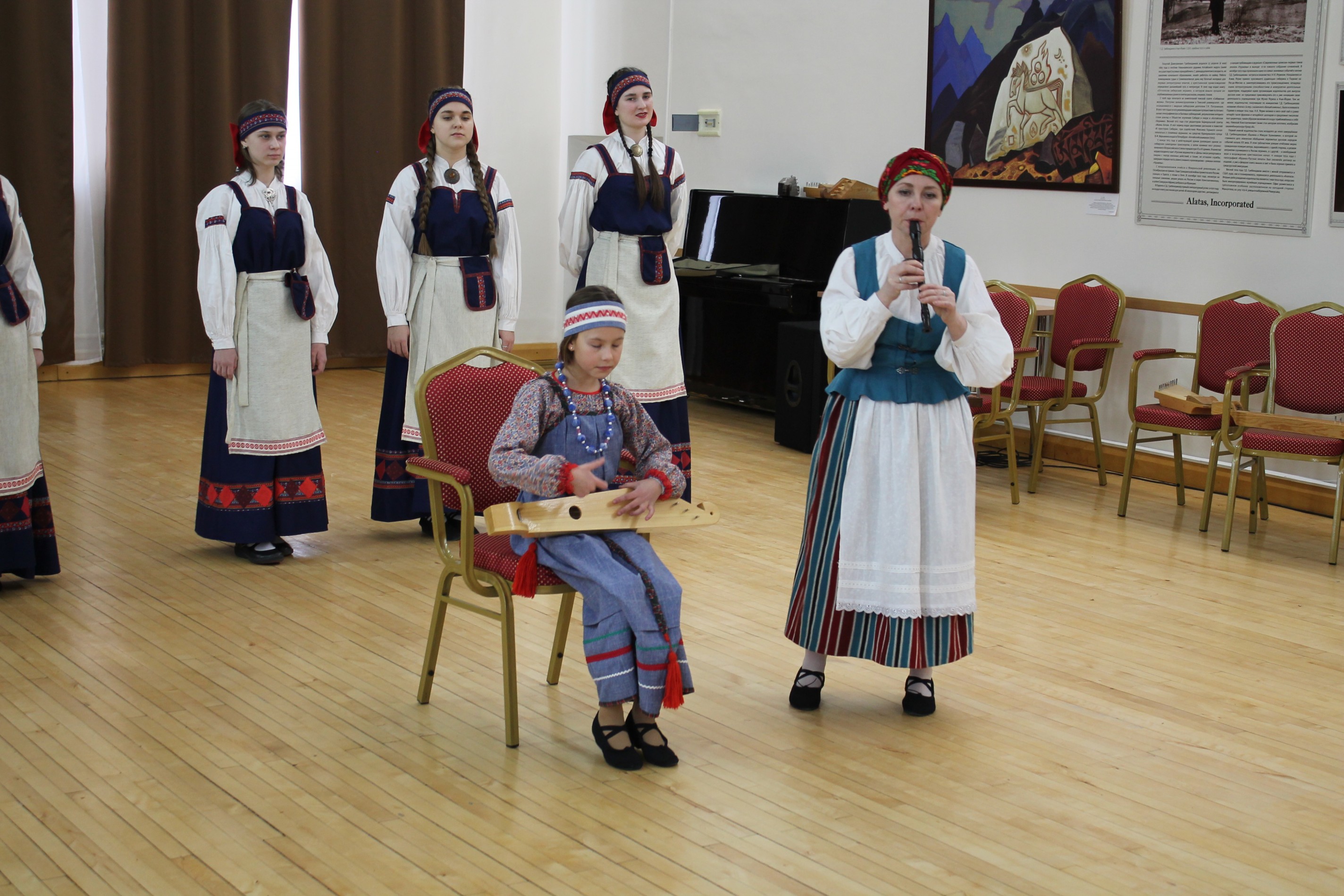 Юные участницы ансамбля «Верея» рассказали своим ровесникам об истории традиционных карельских мелодий, песен и музыкальных инструментов.