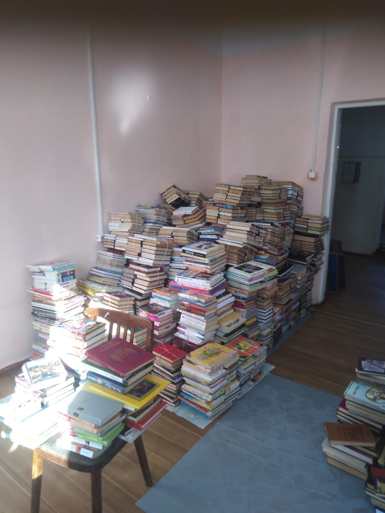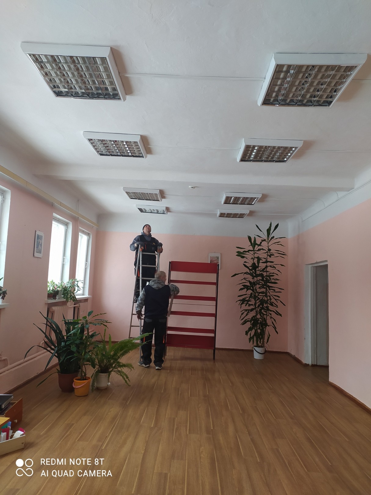 В Вяртсильской городской библиотеке полным ходом идет подготовка к ремонтным работам. Сотрудники библиотеки и волонтеры упаковали, загрузили и перевезли книги на временное хранение. Помещение освобождено от старой мебели, светильников, линолеума.