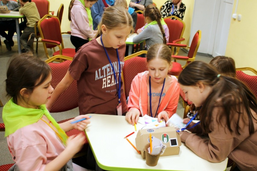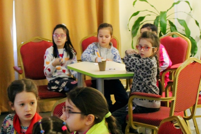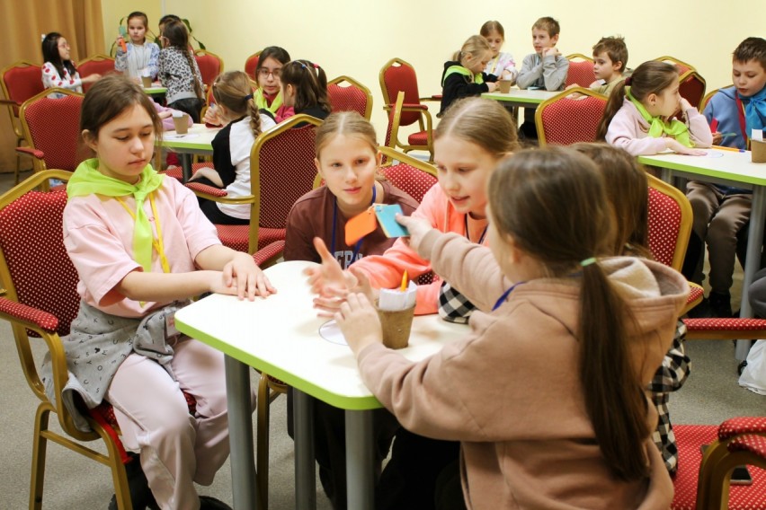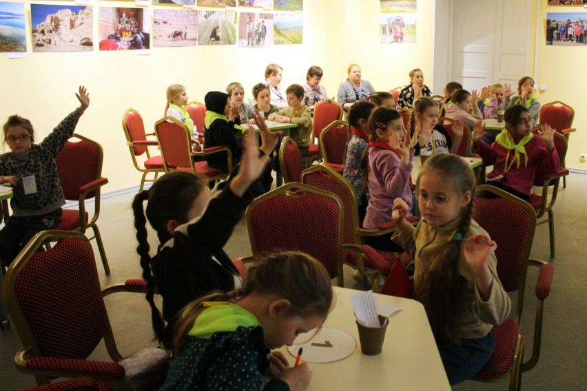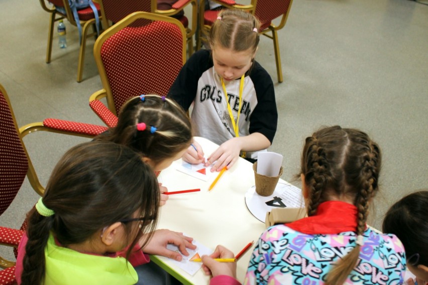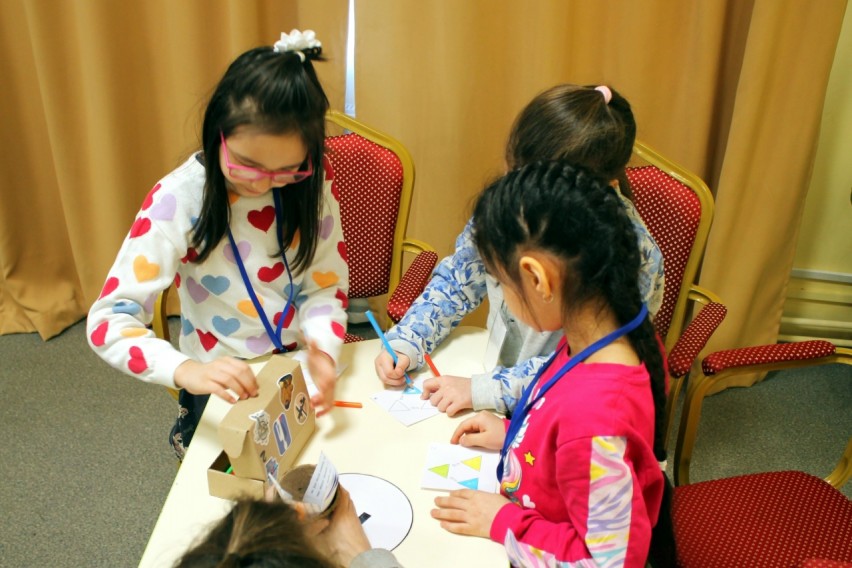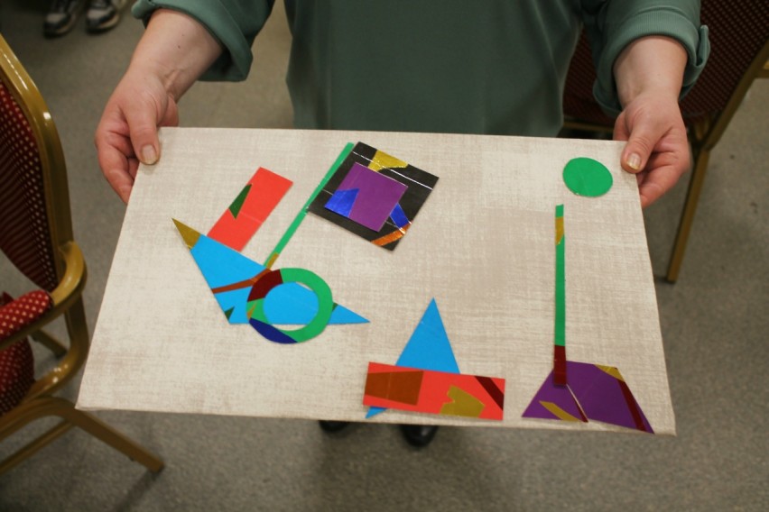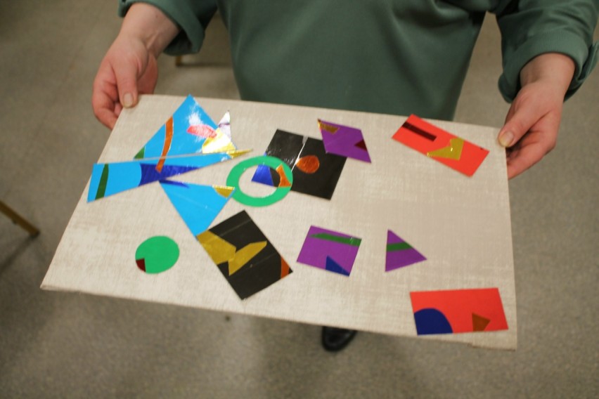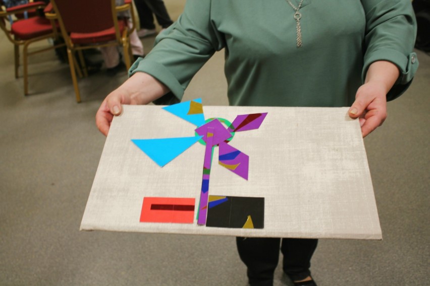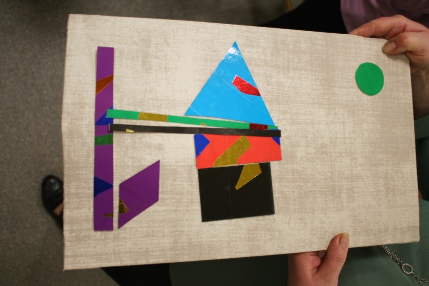 Юные посетители библиотеки узнали ключевые факты биографии В.Кандинского и попытались понять его удивительный мир. Для этого они выполнили несколько необычных заданий: сложить из букв одного большого слова десяток маленьких, «озвучить» живописные полотна художника, ощутить запах цвета, собрать из геометрических фигур свой шедевр абстрактной живописи.