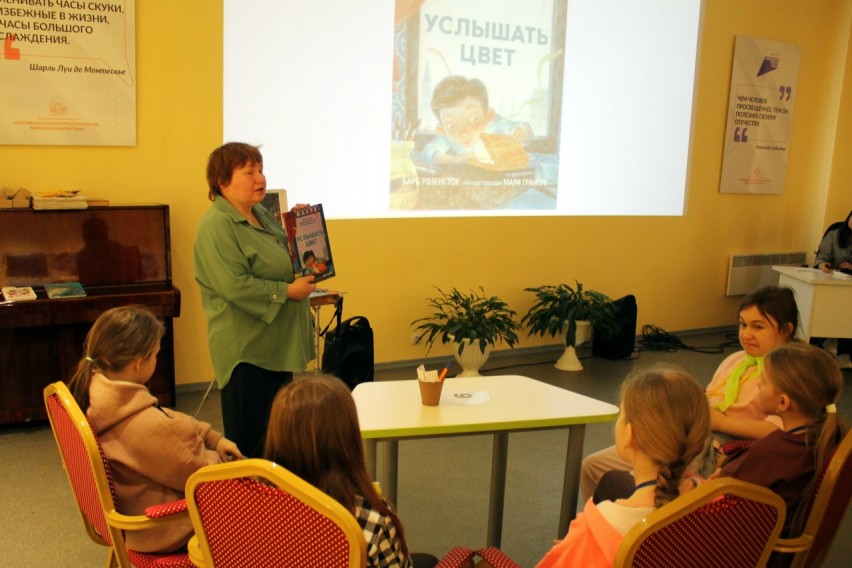 В Сортавальской центральной библиотеке в рамках Недели детской и юношеской книги прошли интерактивные игры по творчеству Василия Кандинского «Услышать цвет в живописи». В основе сценария лежит книга Барб Розенсток о судьбе великого живописца.