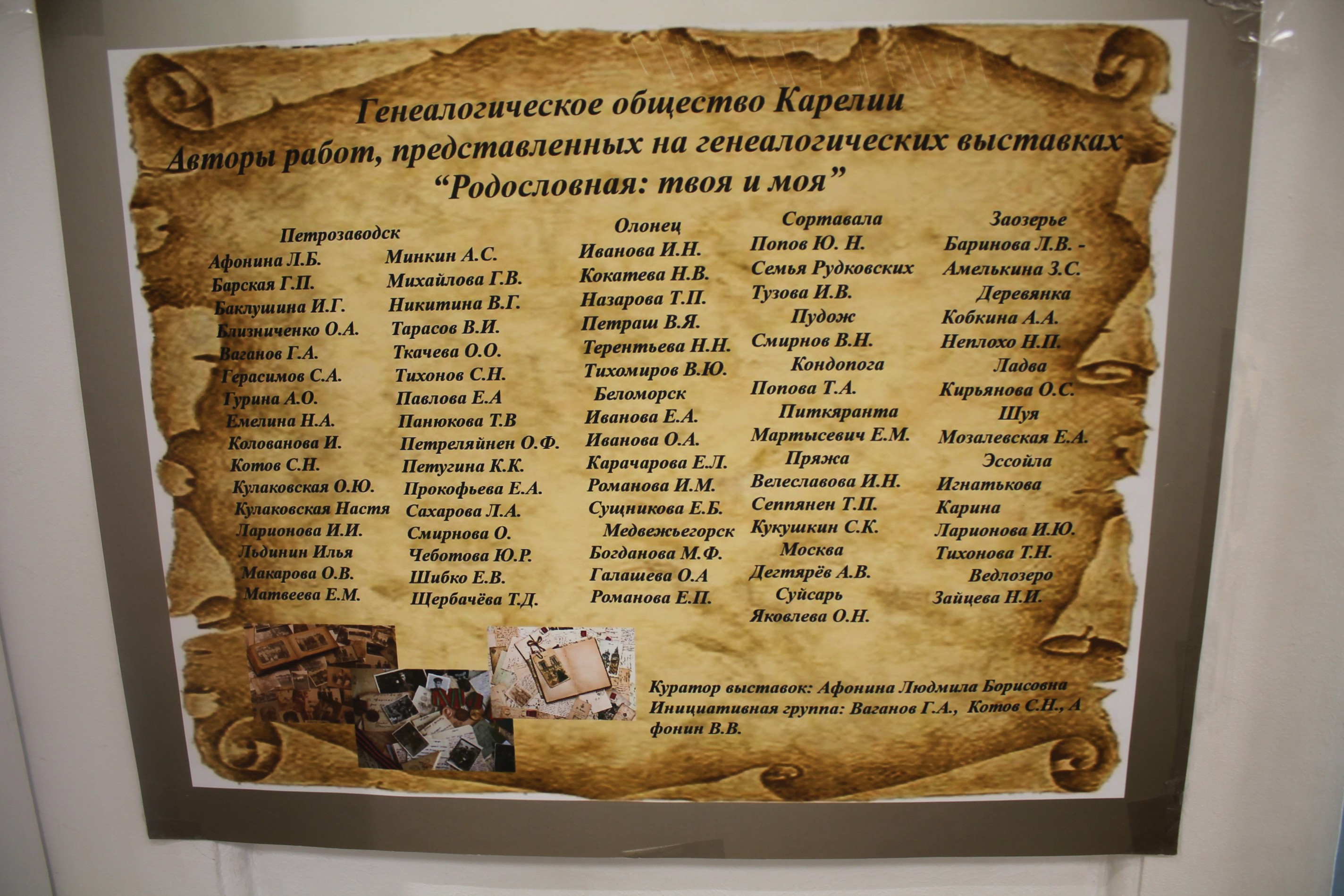 На открытии выставки присутствовали представители Генеалогического общества Карелии: член ГОК Афонина Людмила Борисовна, член Совета Гок Ваганов Геннадий Аркадьевич, член Совета Гок Котов Сергей Николаевич, член ГОК Бахирева Елена Викторовна. Они рассказали о том, как возникла идея генеалогических выставок. Очень подробно познакомили с работами выставки «Далёкое сегодня».
