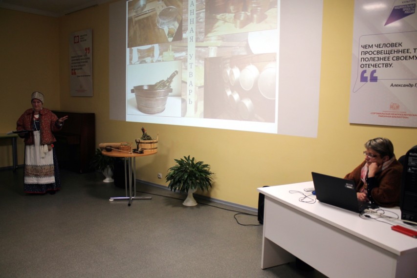 26 сентября в Сортавальской центральной библиотеке прошел час истории, посвященный карельской бане. Хозяйка этнокультурного зала «Karjalan palaine» («Кусочек Карелии»), Алла Михайловна Силкина рассказала о том, как менялся внешний облик бани от древних времен до наших дней. Что, по мнению наших предков, нужно было сделать в процессе строительства бани, её эксплуатации, а чего нельзя было допускать ни в коем случае.