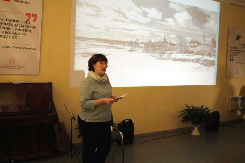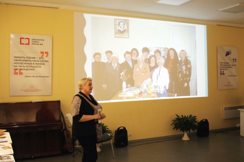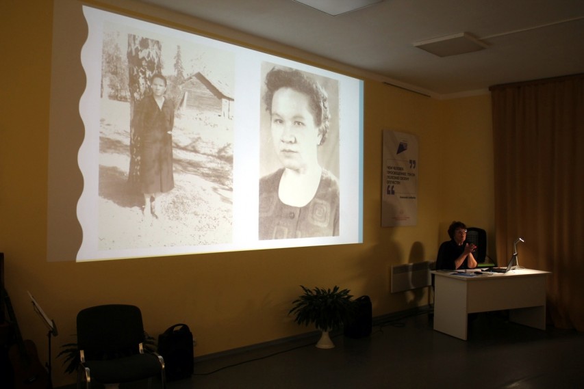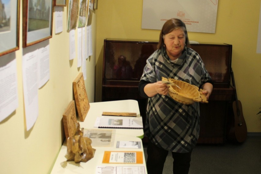 Ведущая вечера, главный библиотекарь краеведческого отдела Сортавальской районной библиотеки Наталья Ивановна Зайцева, рассказала об основных этапах ее жизни и многочисленных увлечениях, главным из которых была резьба по дереву.