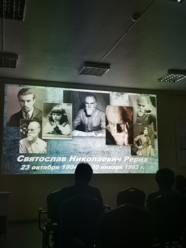 На встрече мы поговорили о жизни этого выдающегося человека, посмотрели 1 часть документального фильма Луизы Тележко: «Младший сын» 2003 года, в котором своими воспоминаниями о художнике делятся индийские и русские друзья Святослава Рериха, познакомились с картинами мастера.