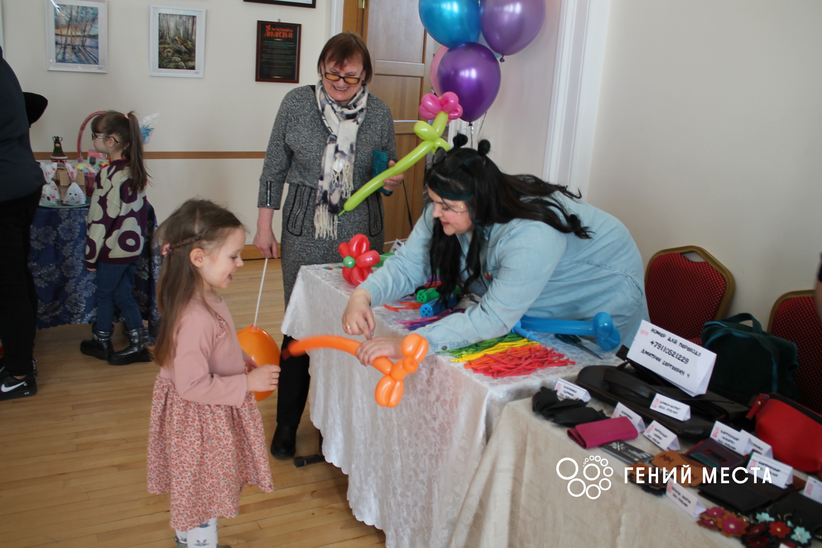 Нашлось занятие и для юных посетителей ярмарки. Дети с удовольствием создавали своими руками фигурки цветов и животных из воздушных шаров. Все желающие могли сплести подвеску «сердечко» из бумажной лозы.