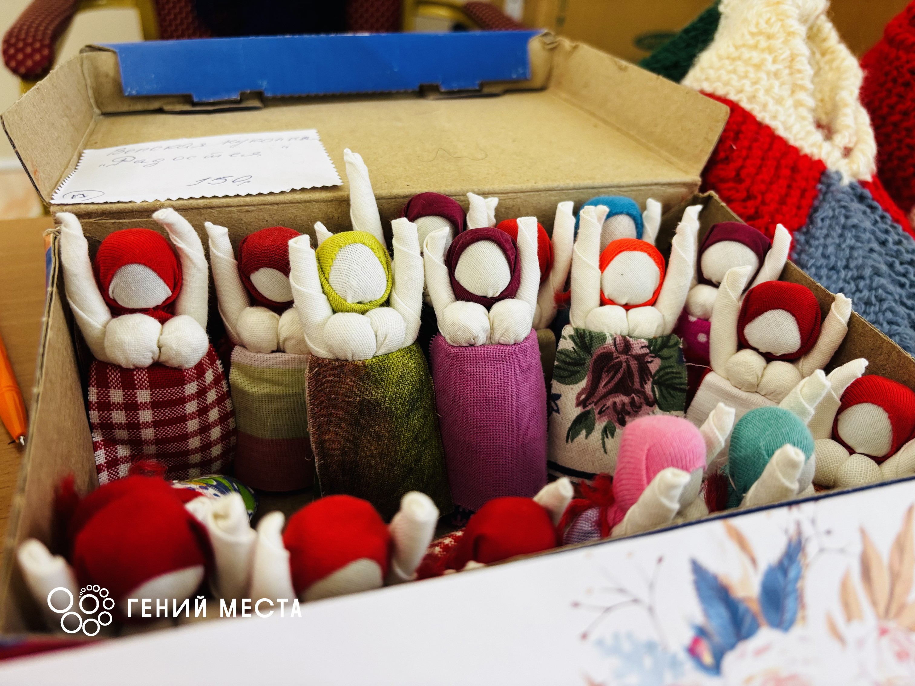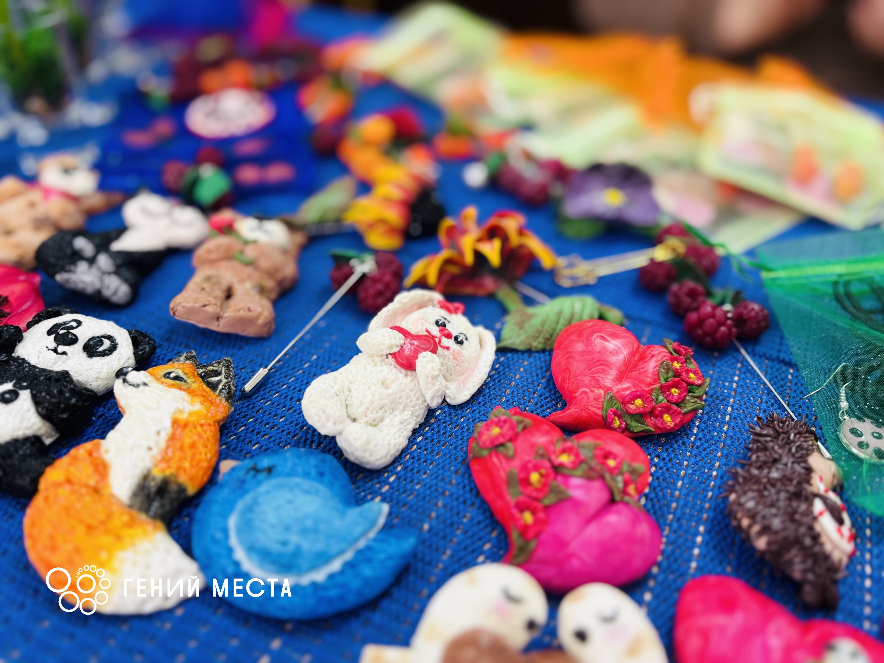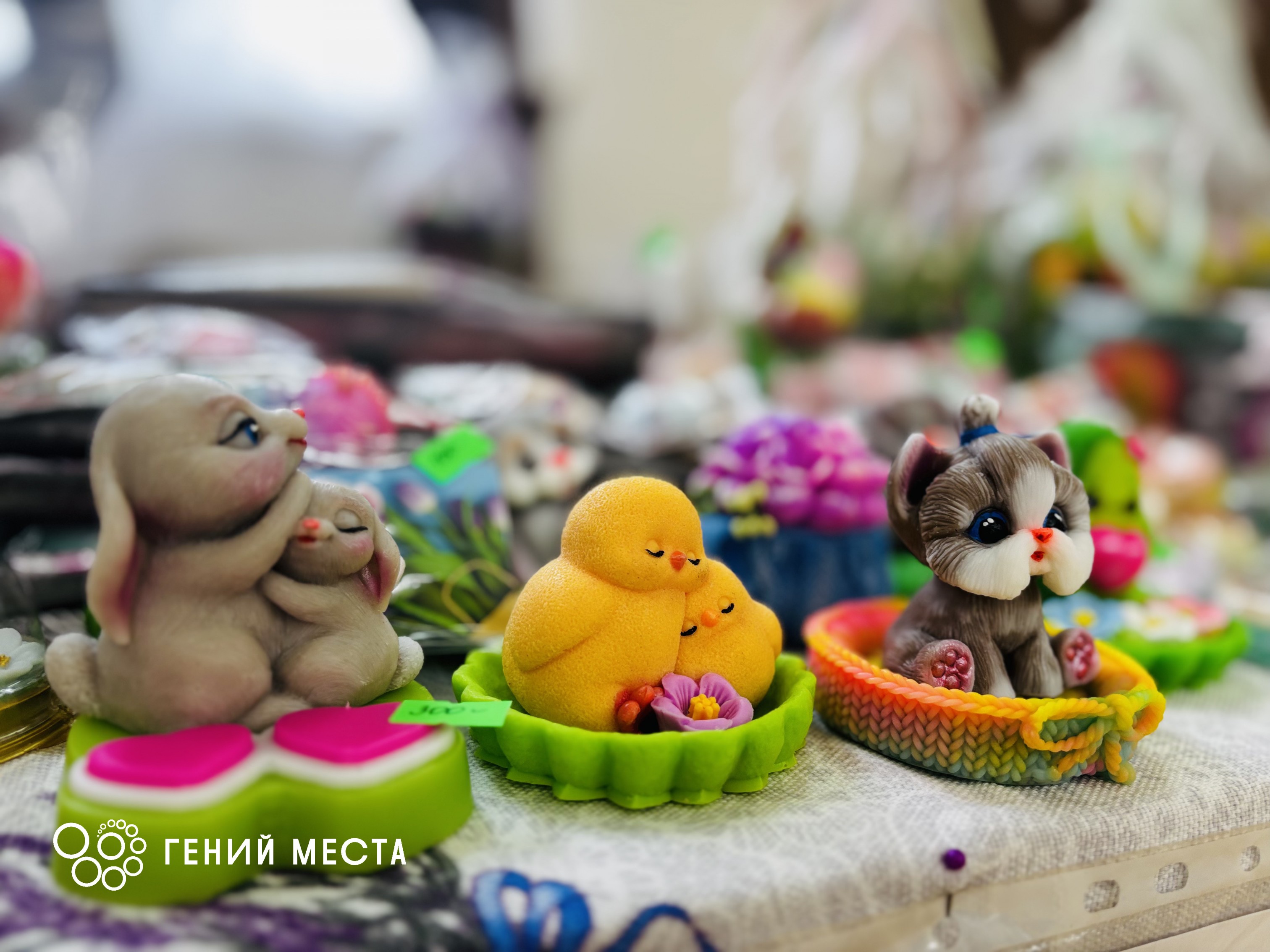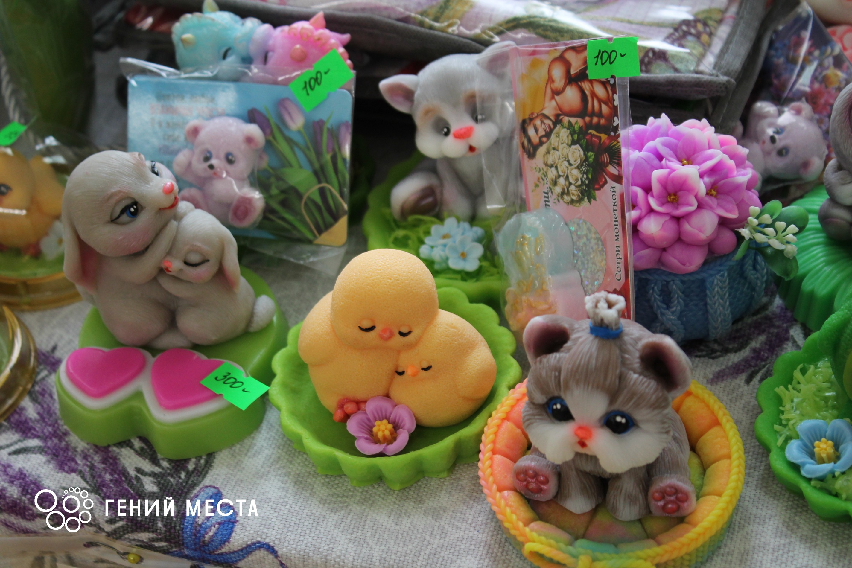 Обережные куклы и авторские игрушки, выполненные в различных техниках, изделия из гипса, вязанные вещи, фигурки из мыла, природная косметика, картины, блокноты и другая канцелярия - вот далеко не полный список того, что могли приобрести гости ярмарки.